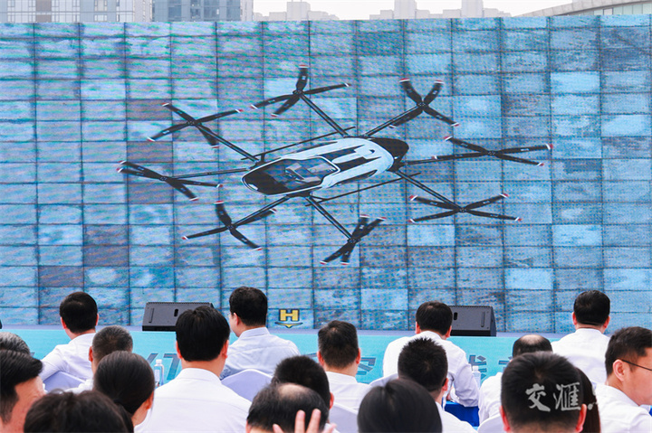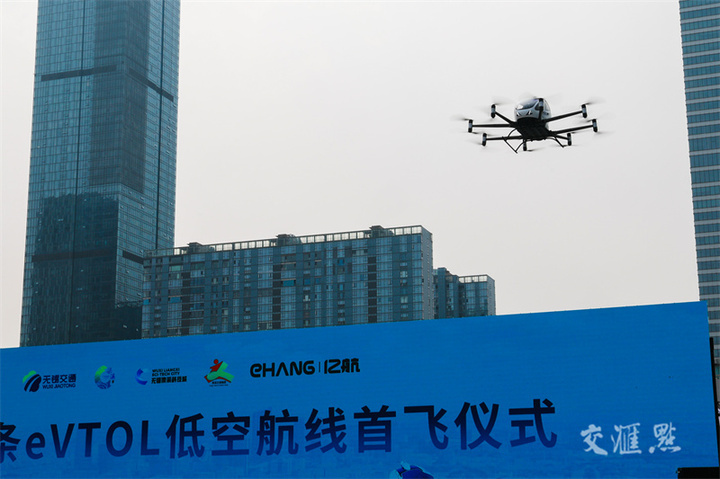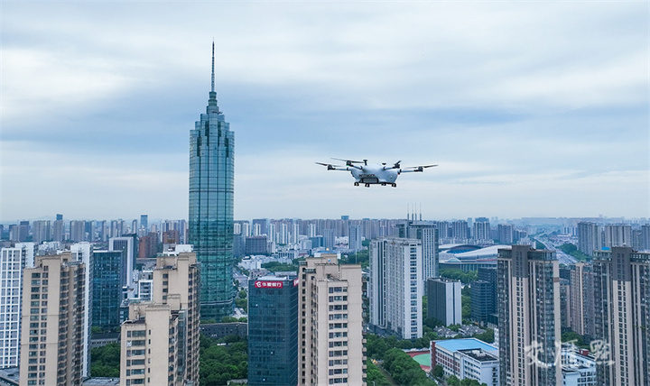 6月1日,eVTOL低空航线首飞仪式在无锡举行,一架由亿航智能自主研发的EH216-S无人驾驶航空器腾空而起,缓缓绕太湖广场飞行。无锡市梁溪区、梁溪科技城以此次首飞仪式为起点,开展与亿航智能的全面合作,聚焦“低空+观光旅游”“低空+物流运输”“低空+空中交通”领域,推动低空经济融入群众生活、链接重点行业。吕枫摄 视觉江苏网供图