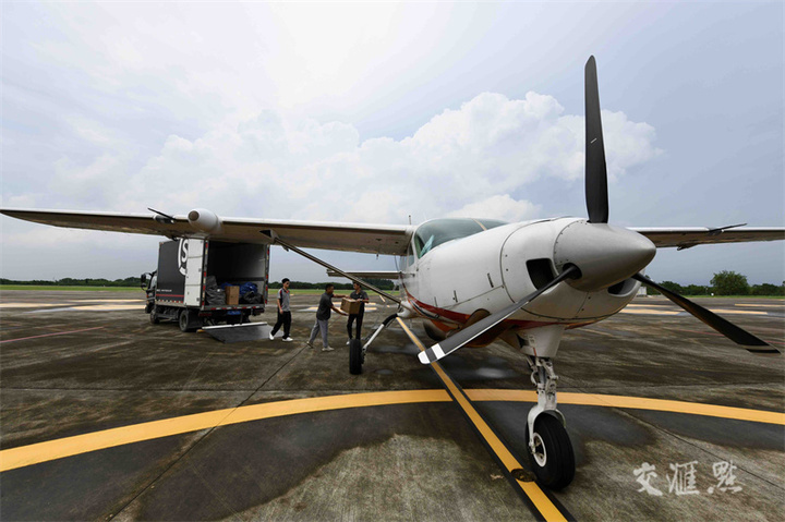 7月18日,在镇江大路通用机场,镇江至合肥低空物流航线成功首飞,在跨省两地间架起一座“空中桥梁”,有力提升两地农产品附加值,助力农民增收。马镇丹摄 视觉江苏网供图
