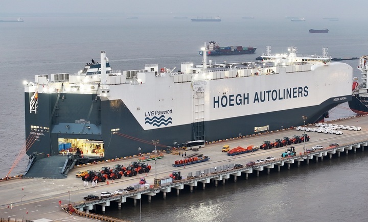 交汇点讯 8月23日17时,载运了2336辆丰泰、吉利沃尔沃等国产汽车,全球最大最环保汽车运输船“礼诺极光”轮从太仓港离泊并首航欧洲,将停靠法国、荷兰、比利时、英国等国家。