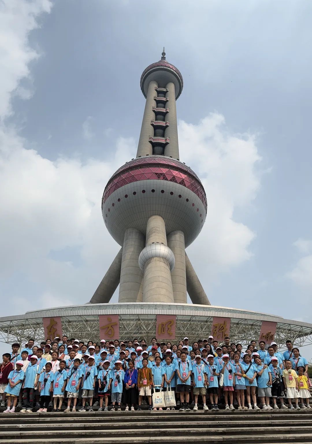 大家一同来到了东方明珠塔,这座标志性的建筑见证了上海的沧桑巨变,孩子们在塔内的展览馆中,通过图片、影像等资料,了解了上海从一个小渔村发展成为国际大都市的历程。