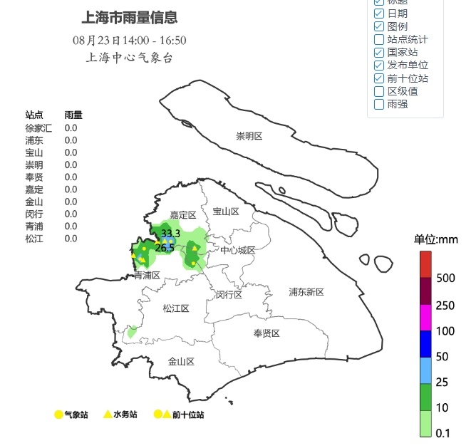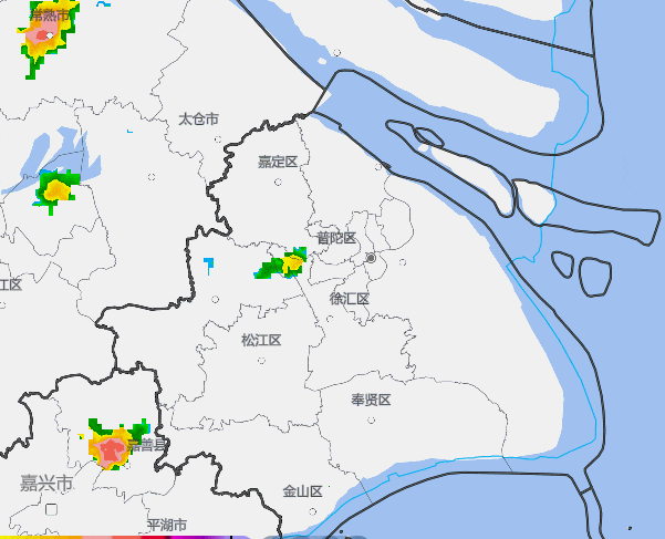 主要的降水集中在闵行北部↓