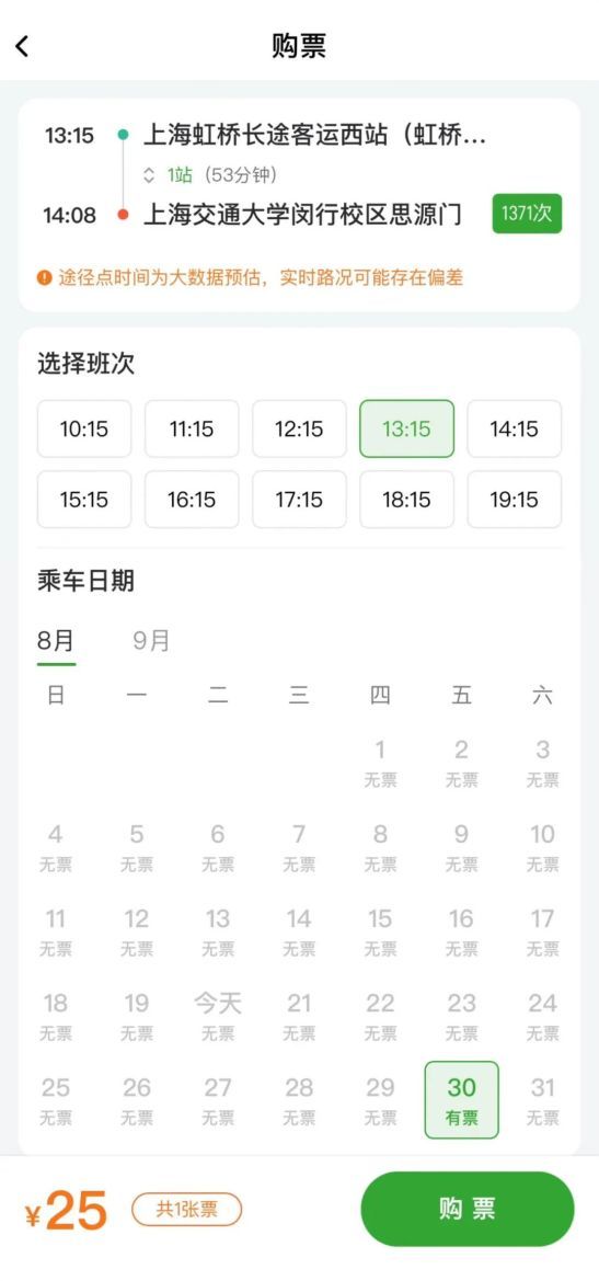 购票成功后,“随申巴士”将显示车票及各枢纽