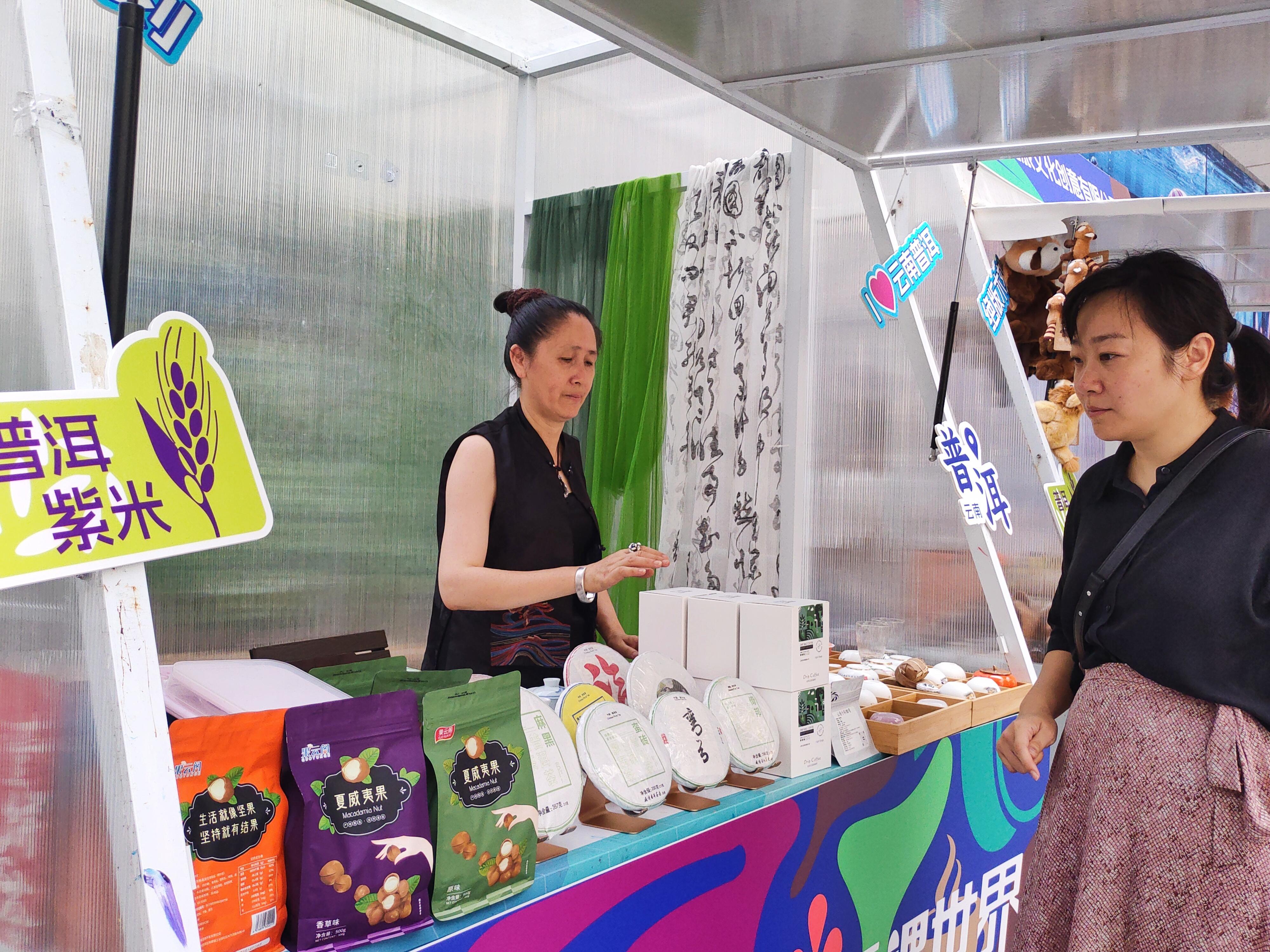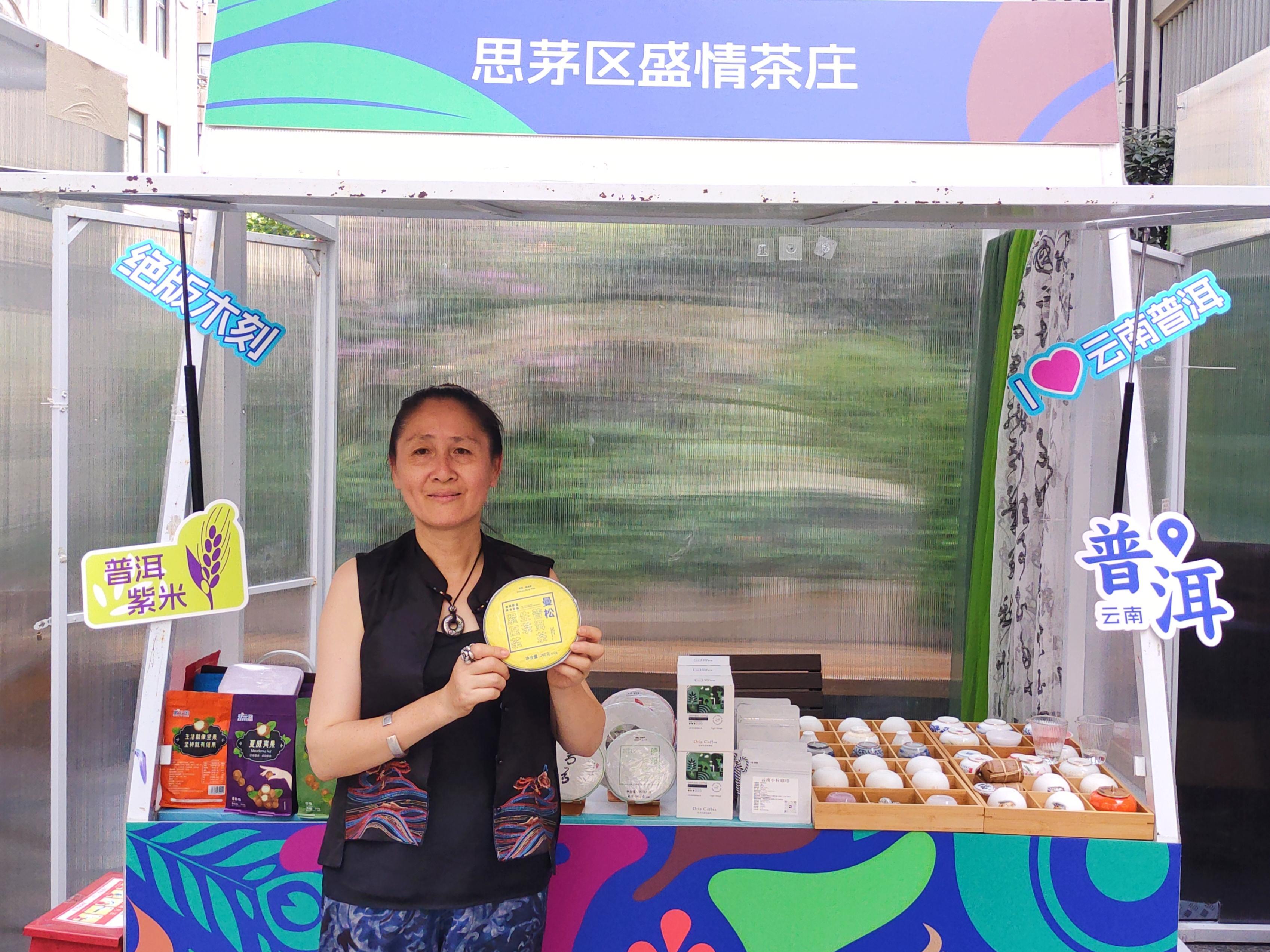 李依纹是普洱市思茅区盛情茶庄的总经理,今年是她第一次参加产销对接展示活动。这次她带来了普洱茶、咖啡豆等多种产品。“我干这一行已经10多年了,我特别推荐这款普洱熟茶。”李依纹拿着一块茶饼向记者介绍道,“这些普洱茶叶,都是我亲自挑选种茶地块,采摘完成的,甘甜、顺滑,口感非常好。”李依纹说,“今年,我们定了一个小目标,那就是通过类似展销活动的助力,实现年销售额翻番。”