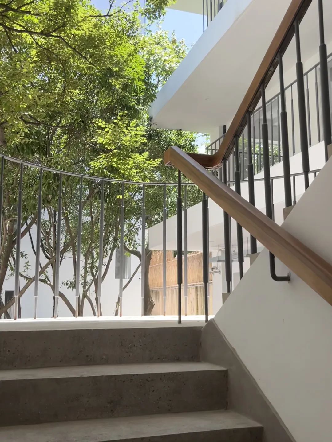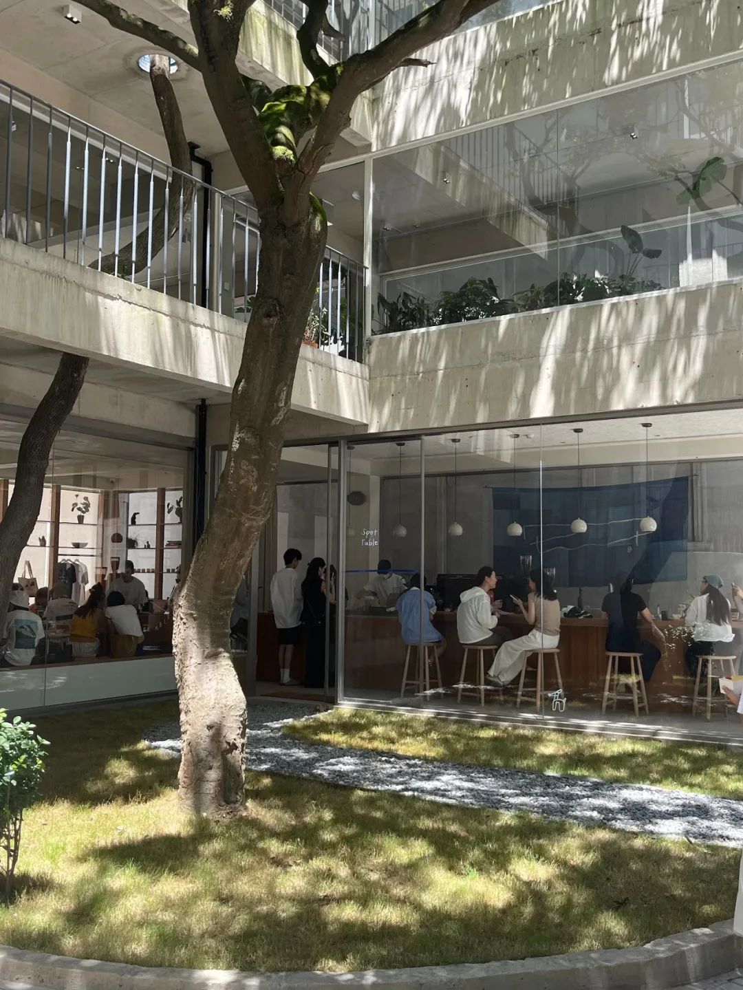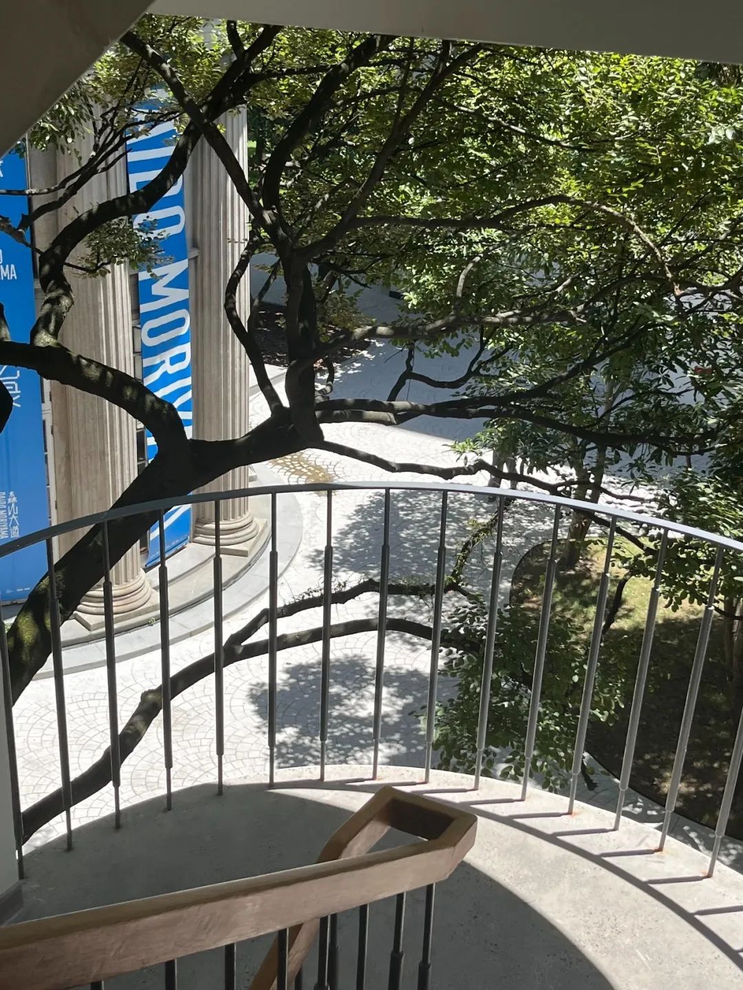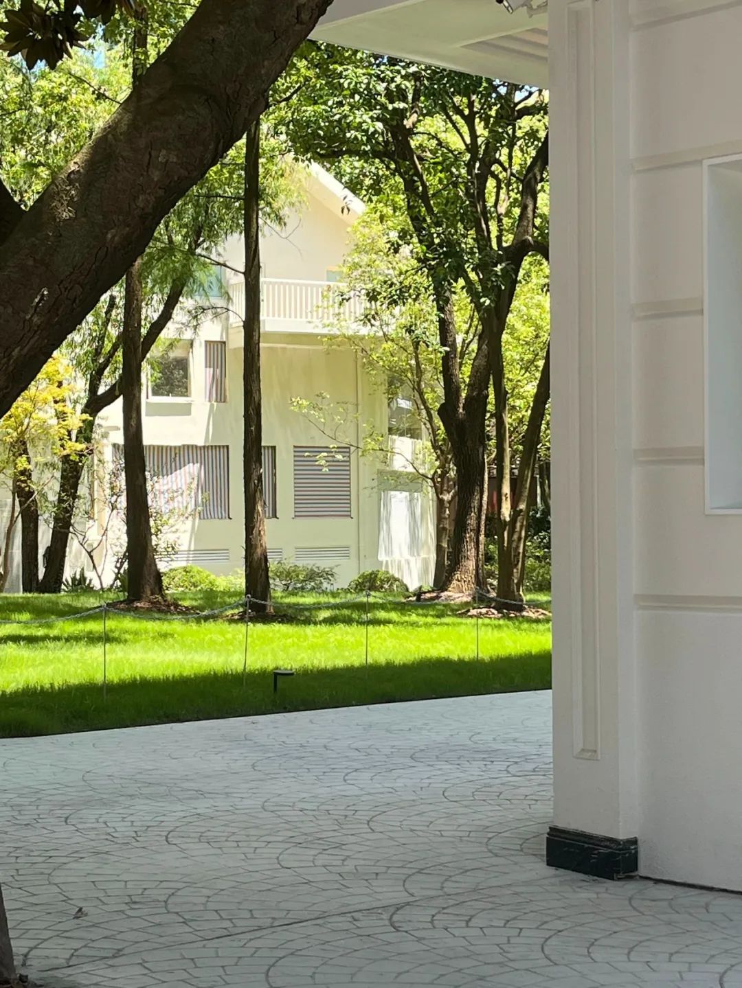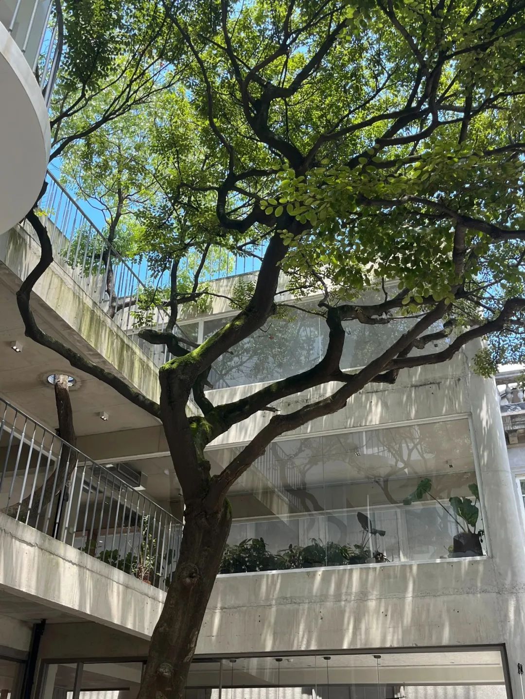 白色建筑物围绕着大树建起,像是从其中生长出来。不同于其他历史建筑街区的厚重感,这里更多的,是与大自然同频共振、共同呼吸的开放感。