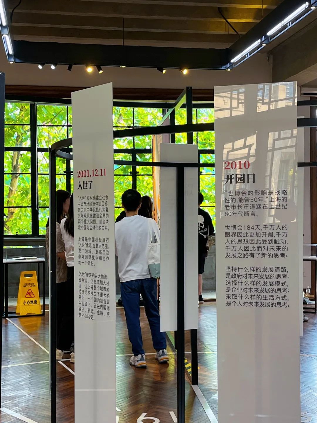 展厅内,放射形展墙宛如展开的十个时间切片,带领观众回溯对上海发展意义深远的历史时刻。