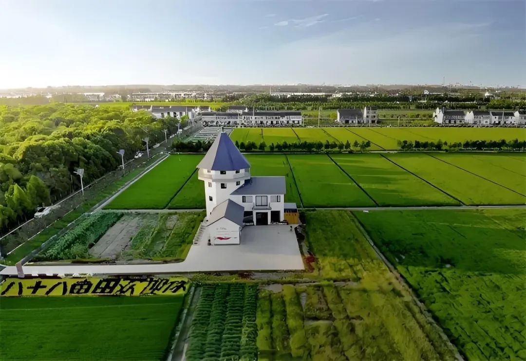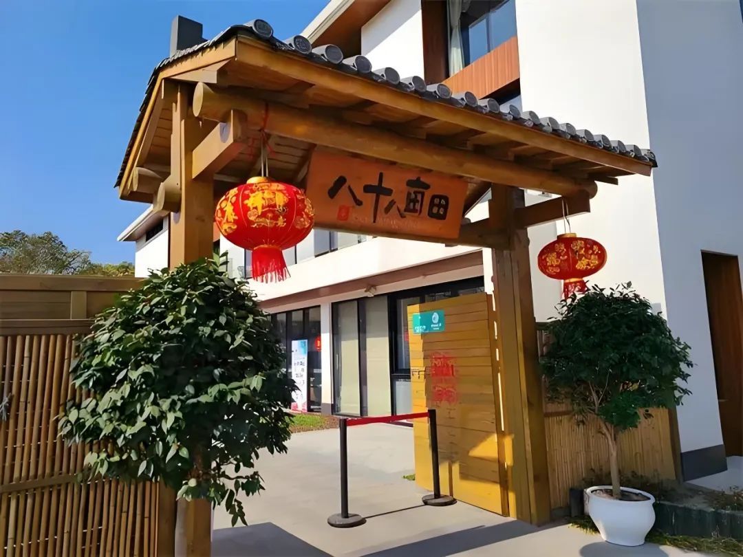 “八十八亩田”乡村民宿是一家建立在稻田间的乡村民宿,主要以农耕文化和稻米文化为主题。推开窗是一片绿色森林,走出门是一望无际的稻田,春看百花齐放,夏听蛙叫蝉鸣,秋临金色稻海,冬赏安静素雅。