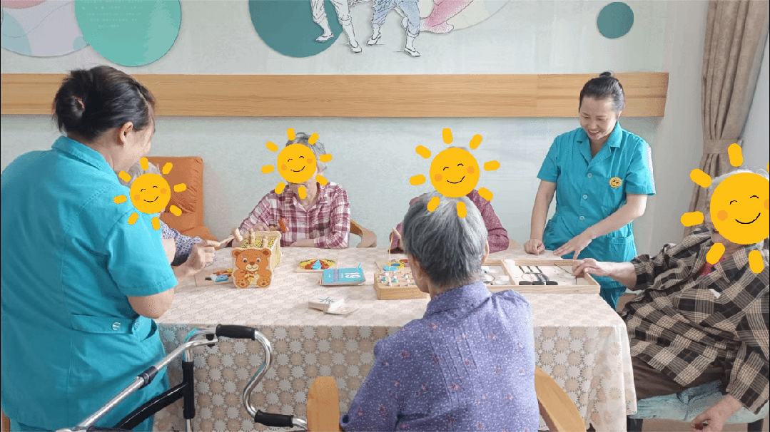 走进文艺活动室,两名护理员正在这里陪认知障碍长者们玩着钓鱼等小游戏。在精心设计多样化环境与活动,借助音乐疗法、记忆游戏等非药物手段丰富长者日常生活、促进认知锻炼的同时,为了防止失忆迷路忘记房间号现象发生,永德敬老院在房门上张贴了长者生活彩照,精细用心足见一斑。