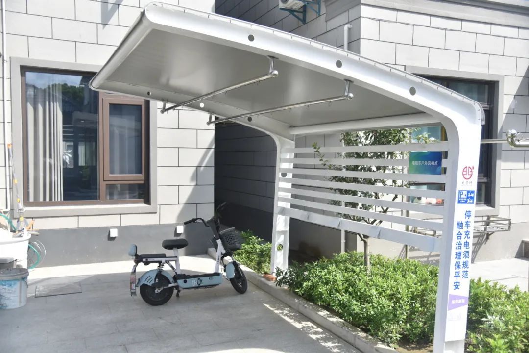 这几天,马陆镇北管村二期“百姓宜居家园”新余家苑小区的村民家门口都安装了崭新的电动自行车充电棚。“我家有4辆电瓶车,以前充电要么推到客厅里充,或者停在门外拉个拖线板充,现在家门口就能充电,既方便又安全。”村民甘忠表示非常满意。