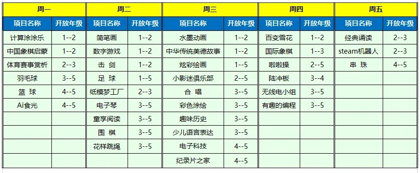 上海市静安小学“预告”了新学期的课后服务菜单: