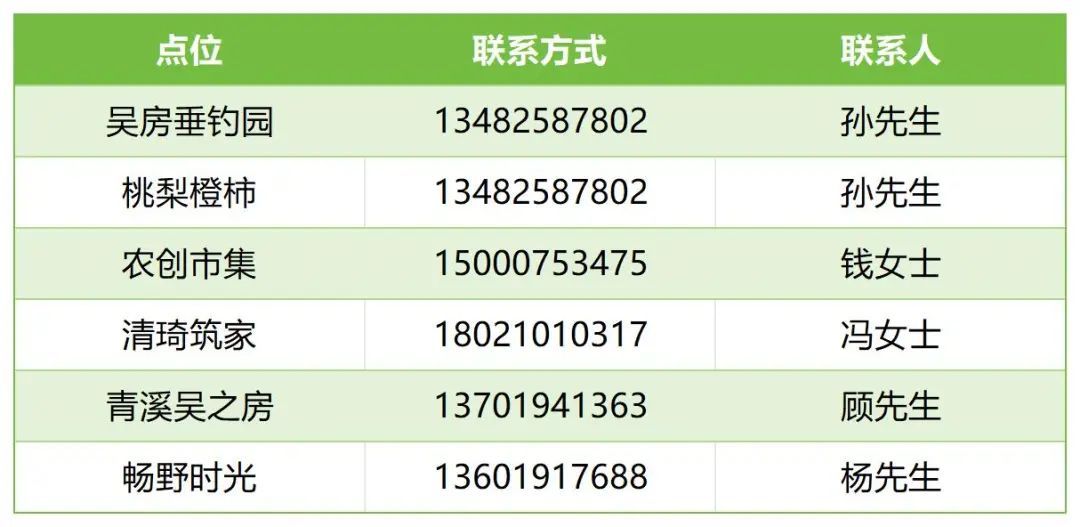 盛夏好时光 夏日悠长,趁兴而行 Summer Good Time 随着暑假的尾声悄然临近 把握这最后的悠闲时光 踏上一场说走就走的旅行—— 青村桃花源正静候您的光临! 逃离都市的酷热与喧嚣 来到青瓦白墙、小桥流水的吴房村 时间似乎放慢了脚步 每一刻都洋溢着闲适与自在 美好夏日里,吴房村汇集了 夜宿露营、亲子互动、乡野咖啡等 一大批精彩特色活动 吃着属于奉贤的绝味黄桃 感受着南上海的悠闲慢生活 让心灵得到彻底的释放与安宁 01 吴房垂钓园 Good Time 该点位总占地约28亩 设有标准竞技鱼塘8个 鱼塘按照竞技垂钓、日常练杆 黑坑钓斤、亲子钓虾、菱角采摘 趣钓甲鱼等内容进行功能划分 确保一年四季有特色 全年天天有项目 该项目运营以文化为内核 将党建文化、农耕文化、水文化 进行有机融合、联动互促 在满足客户 休闲娱乐需求的同时 寓教于乐、寓教于趣 02 桃梨橙柿 Good Time 隐匿于美丽乡村的派对乐园 都市人逃离喧嚣的理想之选 在这里,您可以与亲朋好友 共度美好时光 享受家庭聚会的温馨 丰富的娱乐设施 包括麦克风、棋牌、桌游 游戏机及户外烧烤 让每一刻都充满欢笑与乐趣 让心灵得到真正的放松与自由 03 田心农创市集 Good Time 全力打造黄桃全产业链 以黄桃为IP,深度展现“桃文化” 文创产品涵盖八大品类 超50项设计 在这里,游客们能够带走一份 专属的黄桃记忆 二楼设手工课程 包括土布贴画、五谷丰登绘等 传承文化同时享受创作乐趣 露台空间舒适宜人 品茶赏景,尽享悠闲时光 这里不仅是购物休闲地 更是文化体验 与心灵放松的绝佳场所 04 清琦筑家 Good Time 清琦筑家是一家 现代创意工作室 融合设计美学与休闲生活 一楼清琦小馆 提供多样下午茶套餐 美味与颜值并存 赏花品茗,悠然自得 提供半天至整日包场服务 含棋牌、K歌、台球 更有书籍玩具相伴 DIY乐趣无限,聚会畅聊好去处 更有定制生日会 预约尊享 打造独一无二庆祝时刻 05 青溪吴之房 Good Time 大朋友和小朋友们的欢乐世界 环境安逸、设施齐全 有滑梯、旋转木马、碰碰车 皮筏艇等多种游乐项目 让大朋友们重回儿时时光 让小朋友们尽享欢乐童年 游乐园是欢乐的海洋 在肆意的笑声中 找回久违的童心 快带孩子出来晒晒太阳 补补钙,收集快乐 日常周边遛娃打卡好去处 06 畅野时光 Good Time 畅野露营基地占地共计5.1亩 可同时容纳250人 提供团建、音乐、烧烤 直升机体验、篝火晚会等活动 领略不一样高空观光体验 带你尽情享受 乡野的户外慢生活 也可提供各类 定制乡村旅游活动 定期举办特色乡村露营活动 提供视频拍摄、音乐演唱会 乡村实体剧本杀、肌理画 流体熊等时下 流行的活动游戏体验 暑假虽将尽,但美好永不落幕 快来青村桃花源,抓住夏天的尾巴 让这份静谧与美好成 为您记忆中最温柔的篇章
