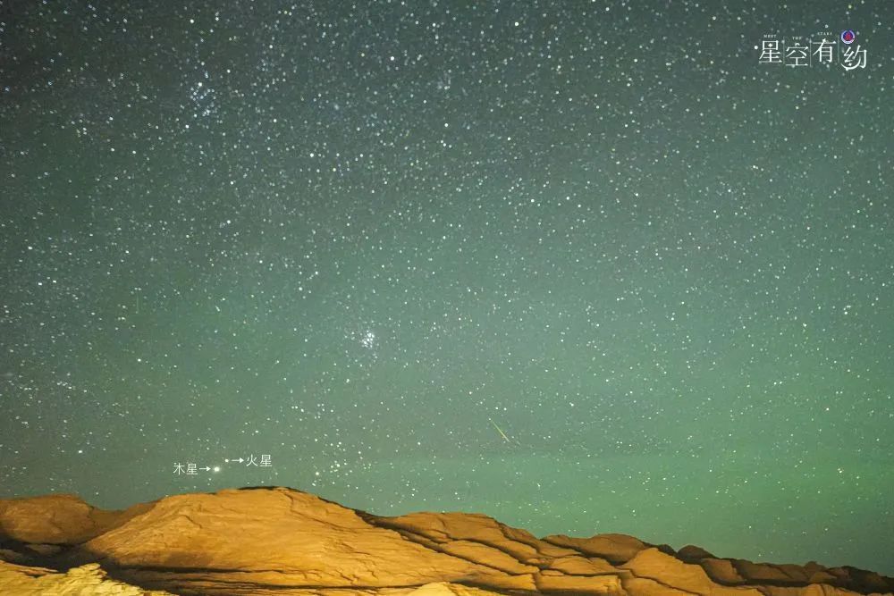 这是2024年8月13日在新疆哈密大海道拍摄的刚升起的火星和木星。(星空摄影师王俊峰 摄)