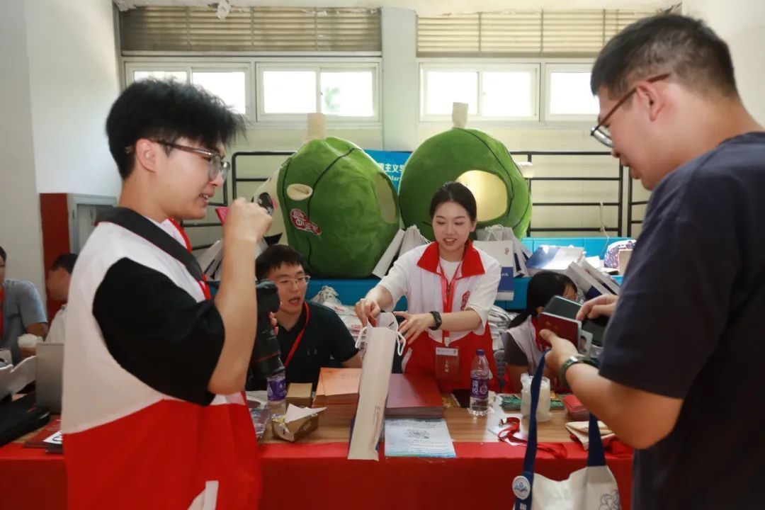 院系师生在摊位前就位