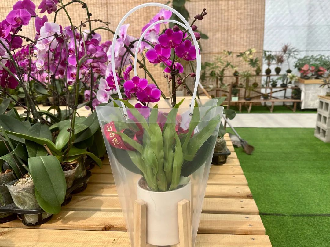 颜色丰富、大气华丽的蝴蝶兰花形如同蝴蝶飞舞般,尤为雅致,因而也得到花卉市场格外受宠。记者随后来到主营蝴蝶兰的熠卉园艺,这里的工作人员正忙着为蝴蝶兰组盆包装。只见她先将植株从叶腋中抽出长长的花梗进行固定,然后挂上祝福语,再放入透明的礼袋中。“这种6株一盆的蝴蝶兰,一周的订购量达60盆,还有外地花商前来预订。”工作人员介绍,为了准时交付到客户手中,大家都抓住日常销售间隙,争锋多秒地包装作业。