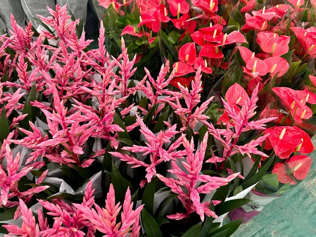 在阿里山花卉的花房,水塔花、姜荷花、君子兰、花烛等品种鲜花一字排开,空气中透着不同花香交织的气息。几名工作人员正忙着搬运早晨新到的杜鹃花和三角梅。“红色花卉比较受欢迎,尤其节日,图个热闹喜庆。”老板吴丽霞介绍,9月份的节日比较集中,加上是室内装潢装修的旺季,企业选择花卉、绿植的场景较多。门店目前有60多个花卉品种,等暑气散去些,还会上新更多品种,供客人选购。