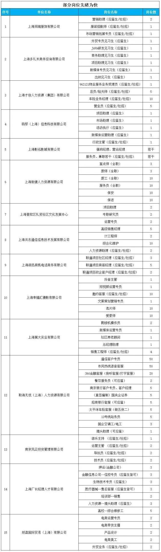 15家企业现场招聘,提供70余个岗位,招录300余人,包括大量应届生岗位,涵盖服饰、人力资源、通信信息、国际贸易等多个行业领域。