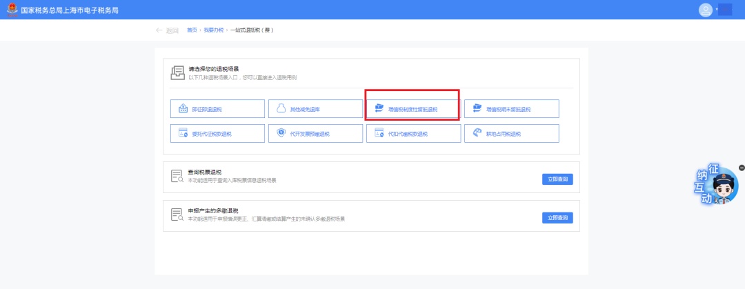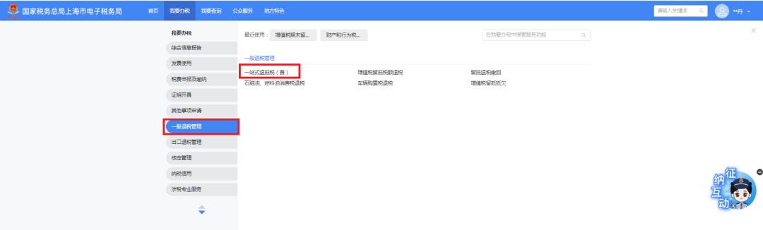 在申报期完成当期增值税及附加税费申报后,财务朋友们可登录新电子税局,点击【我要办税】-【一般退税管理】-【一站式退抵税(费)】进入功能页面。