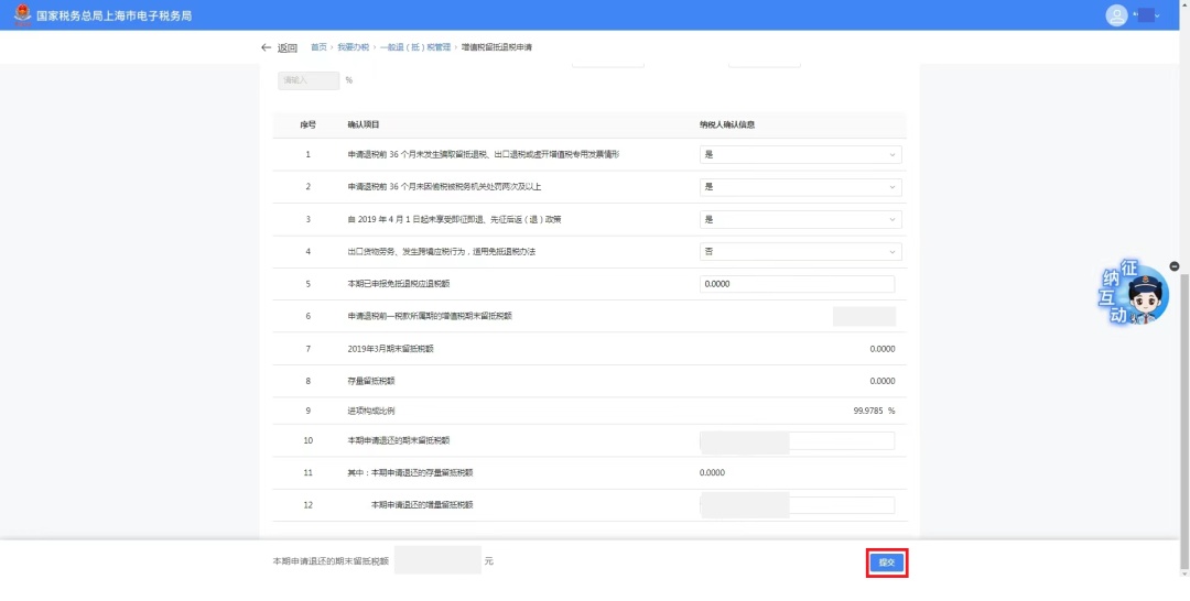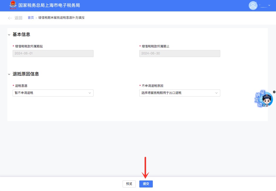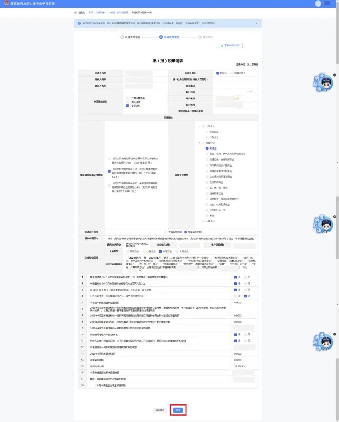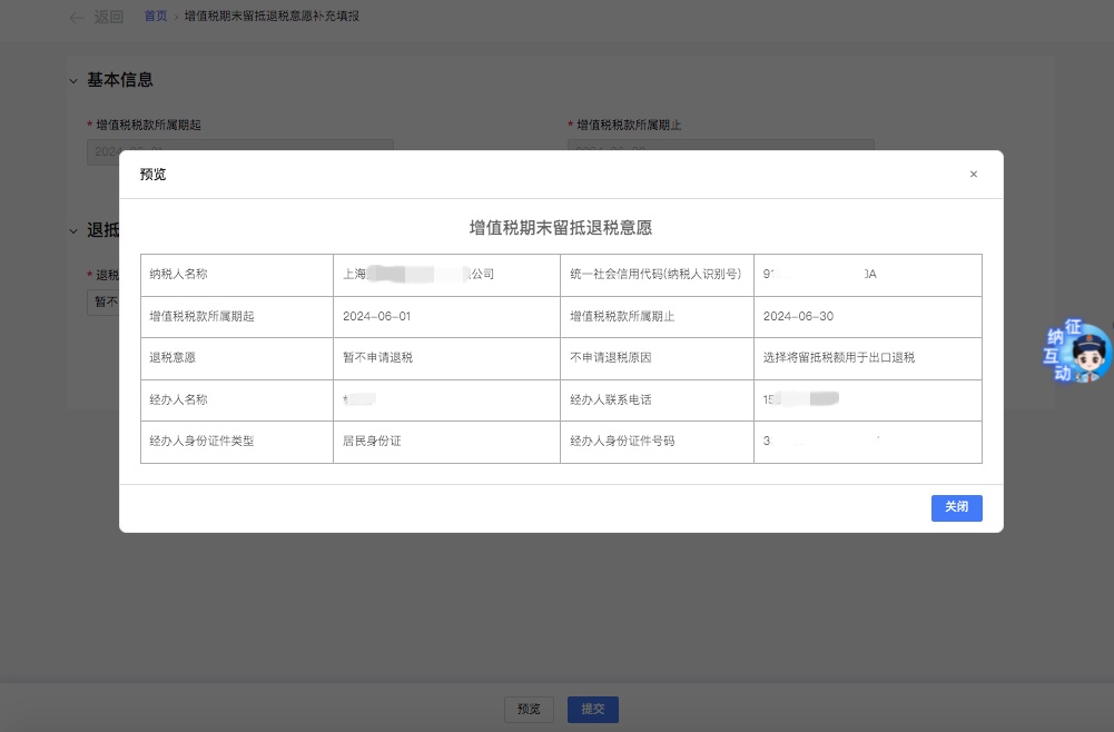 确认信息无误后,点击“提交”按钮,提交保存采集或修改的退税意愿,完成意愿采集流程。