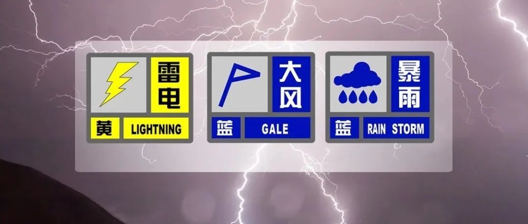 8月27日14时35分发布暴雨蓝色预警信号;8月27日14时35分发布大风蓝色预警信号:此前发布的雷电黄色预警仍然高挂。