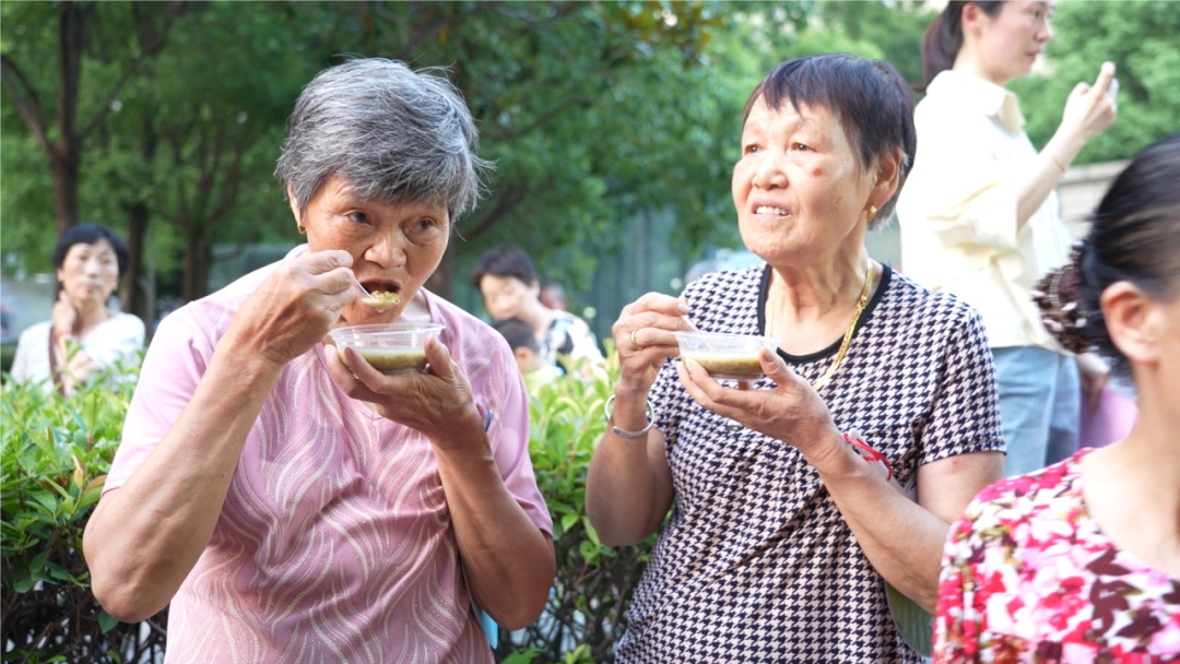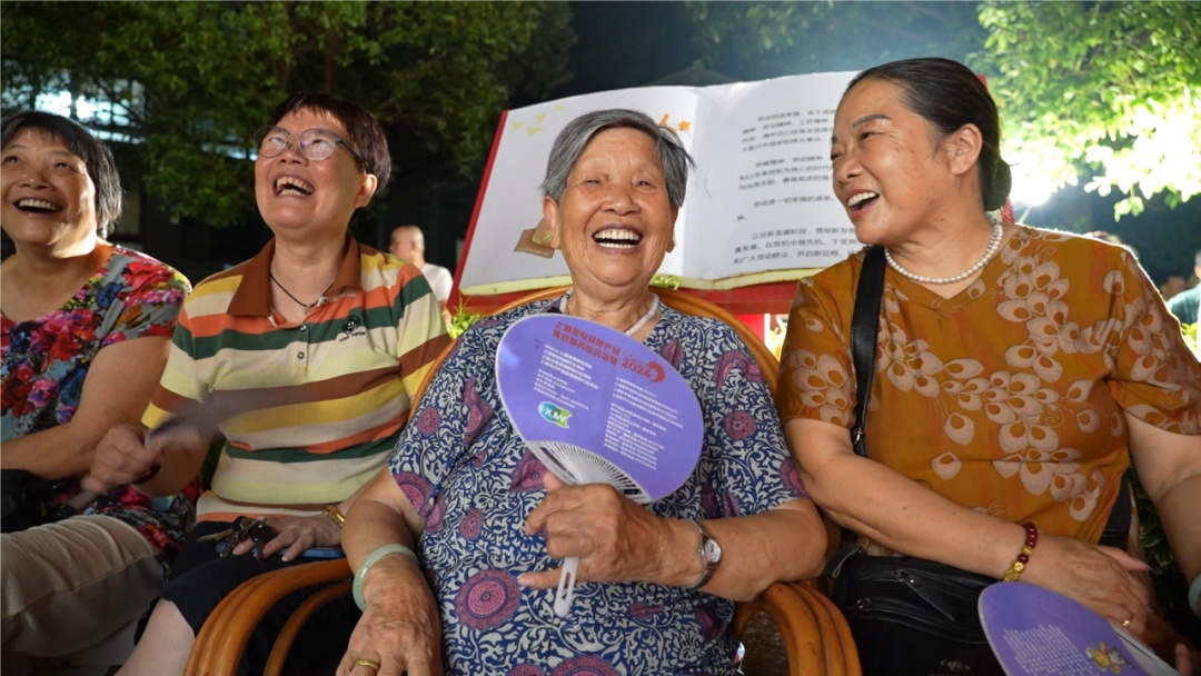 今年90岁高龄的王阿姨一早就来到了现场,抢到了前排坐席,她说:“表演得很好,也有子女和邻居陪着一起看,让我想起以前在老宅的时候,很开心。”“平时不怎么出门的,今天带着娃一起下来吹吹风,还有节目看,感觉蛮好的。”王女士说道。