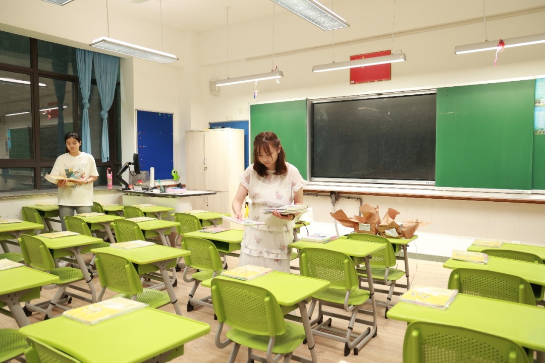 在杨浦区打虎山路第一小学,各班老师将新学期的课本提前进行整理、分发,确保孩子们一开学就能拿到教材,迎接新学期。各学科的教师,已提前对教材进行了备课磨课,将为孩子们带来更加充实、丰富的课堂。