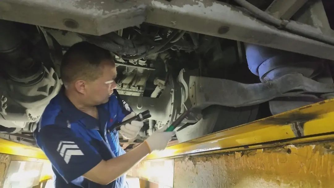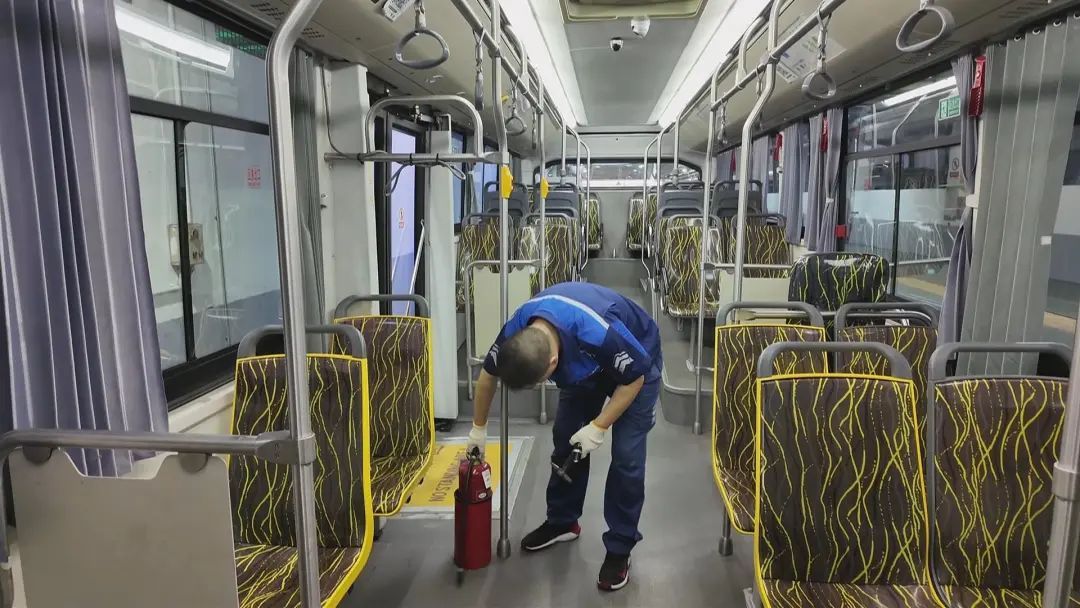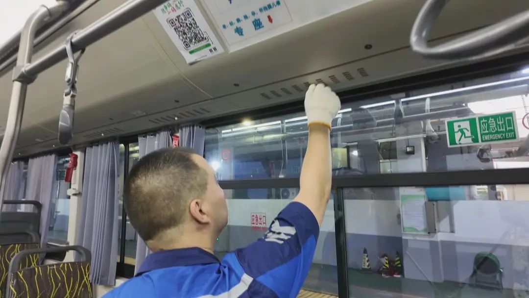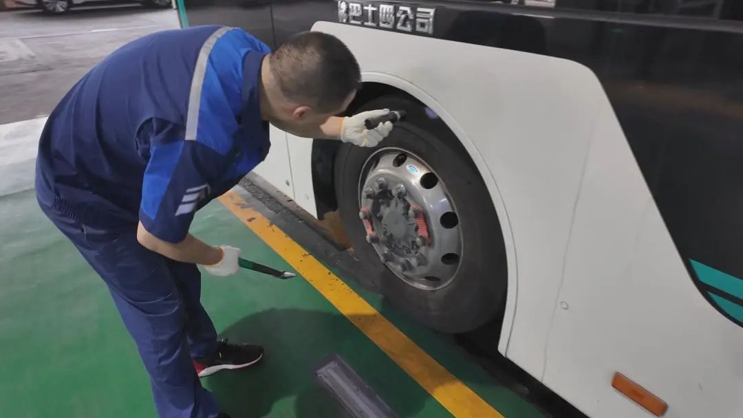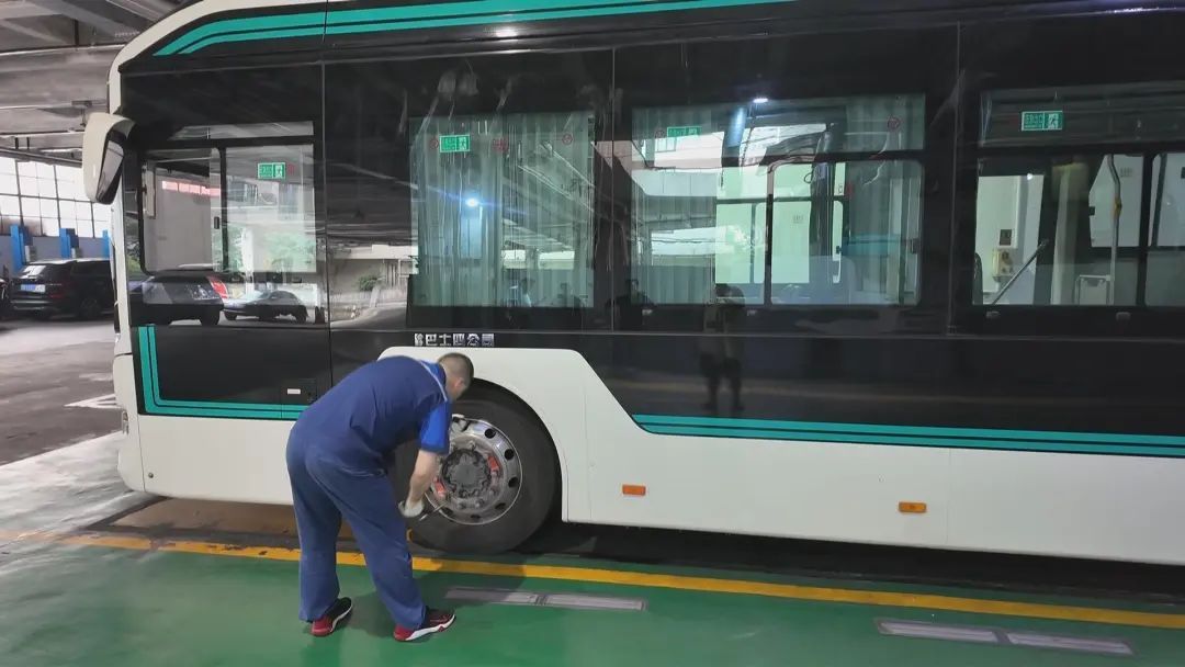 在巴士四公司的重庆南路停车场,工作人员正对公交车辆的灯光、刹车、轮胎制动以及车载消防设施进行逐一“健康体检”,确保所有公交车辆均处于最佳运行状态,坚决杜绝任何存在安全隐患的车辆上路行驶。鉴于今年夏季的高温天气,工作人员还特别加强了对车辆空调出风口和滤网的清洁频次。
