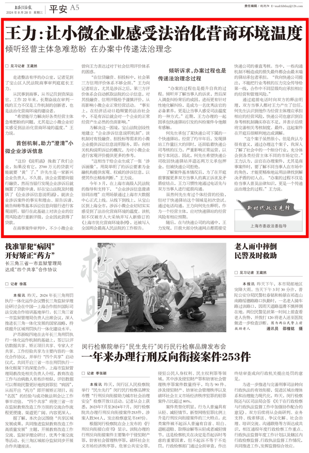 今年3月,在上海市高级人民法院的指导和支持下,“企业涉诉信息澄清协同治理”应用场景通过上海市大数据中心正式上线。从线下到线上,从宝山区到上海全市,涉诉小微企业切切实实感受到了法治化营商环境的温度。该机制不仅被市人大采纳并写入新修订的《上海市优化营商环境条例》,还被写入全国两会最高人民法院的工作报告。