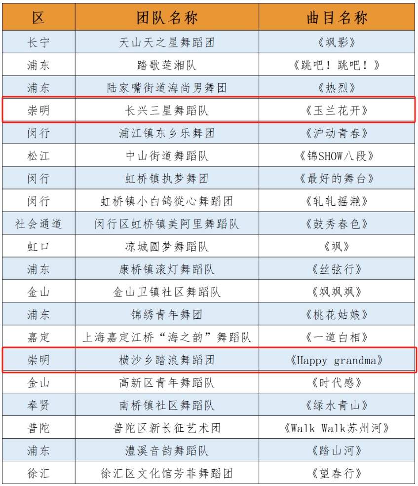 2024市民文化节广场舞大赛自启动以来,吸引了众多热爱舞蹈的市民朋友,全市16个区以及社会通道共计140余支团队,经过为期4天的激烈角逐,在专业评委与大众评委的公正评审下,最终角逐出20支“梦想舞蹈团”和广场舞百强舞蹈团队,以及4支“社会通道优秀广场舞团”。恭喜崇明长兴三星舞蹈团、横沙乡踏浪舞蹈团获评“梦想舞蹈团”,让我们一起看看吧!