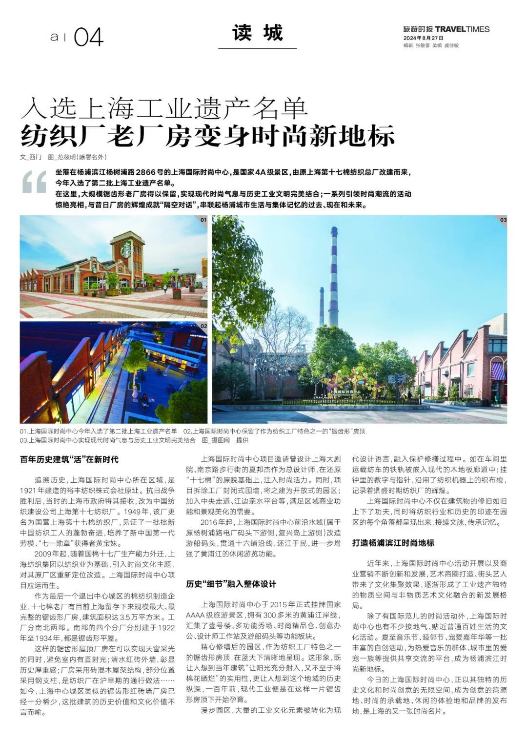 坐落在杨浦滨江杨树浦路2866号的上海国际时尚中心,是国家4A级景区,由原上海第十七棉纺织总厂改建而来,今年入选了第二批上海工业遗产名单。