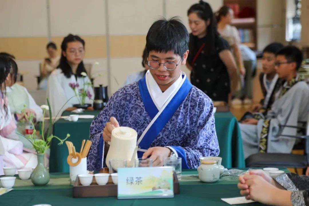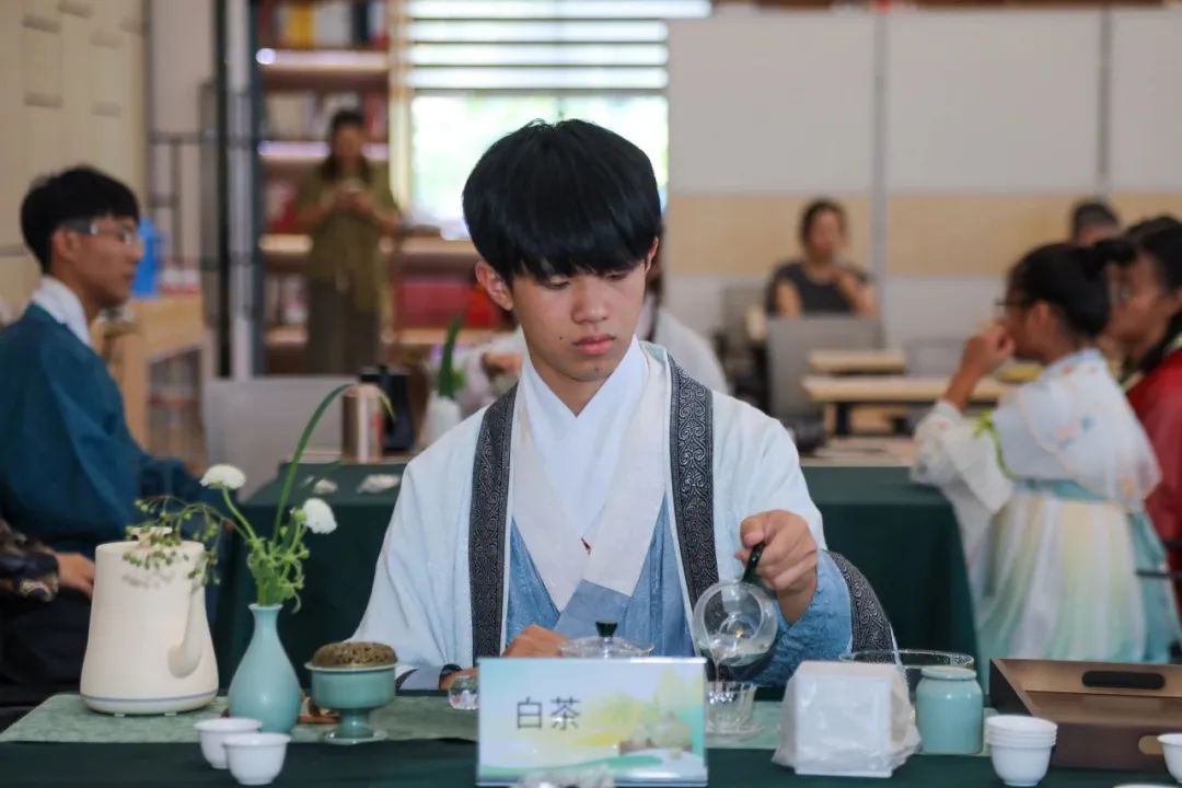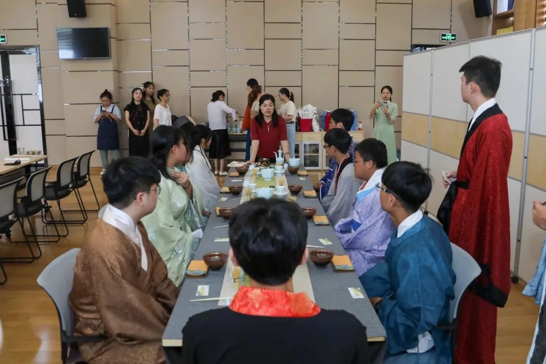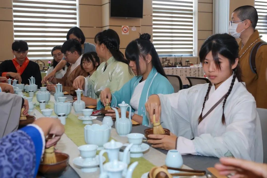 作为华夏礼仪之邦的文化符号,汉服文化在年轻人中已然形成了一种新的风潮。在活动正式前,两岸青年在礼仪老师的指导下穿上汉服,为品茗茶香增添了几分仪式感。