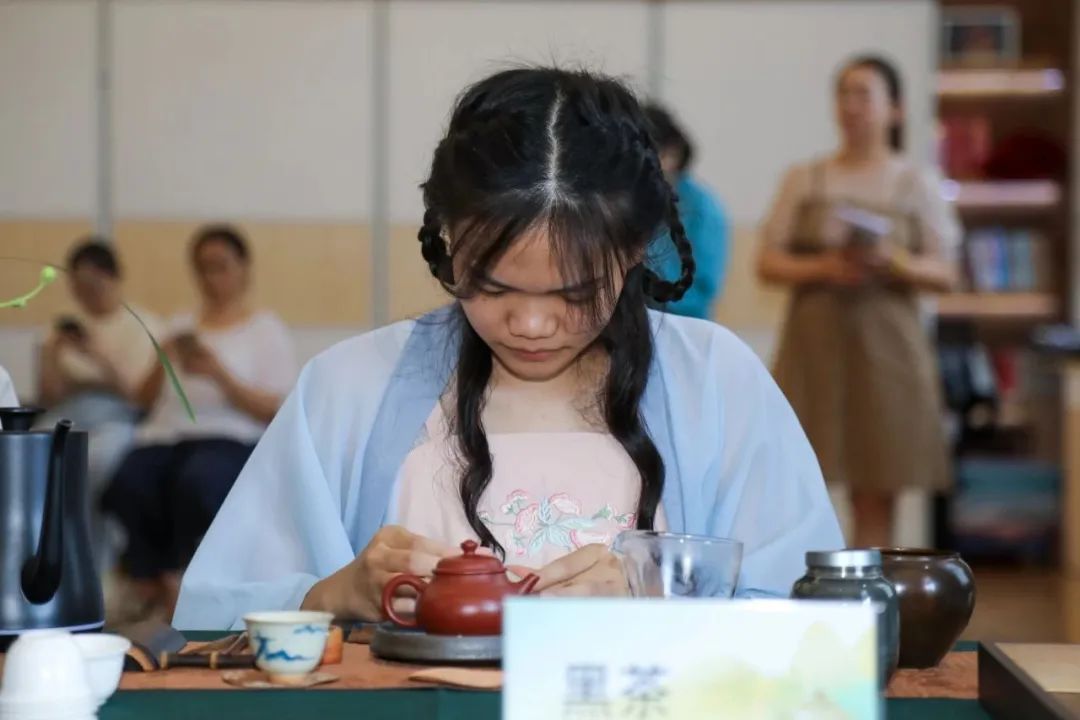 在活动中,两岸青年通过抽取卡片,分成6个以六色茶命名的小组,进行六色茶艺大PK。在学习了解茶历史、茶与器皿的搭配、六大茶类识别等知识后,青年们在专业茶艺师的带领下,学习自己选的茶类泡茶方式,在备具、赏茶、温具、洗茶、沏茶等一道道泡茶工序中,深入了解中国茶道文化的礼仪和寓意。展示PK环节,每组代表进行简单的茶艺展示,选手们表现都很出色。综合品茗、茶点搭配等方面,最终黄茶组拔得头筹。