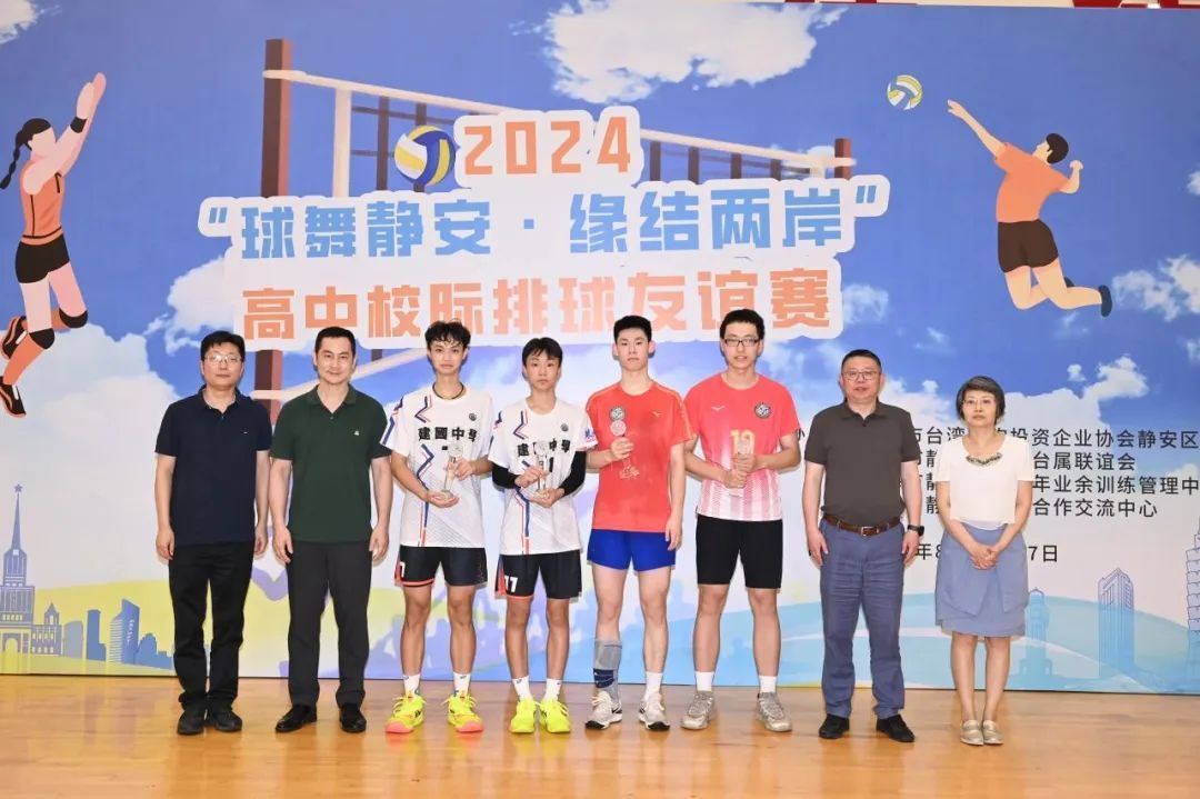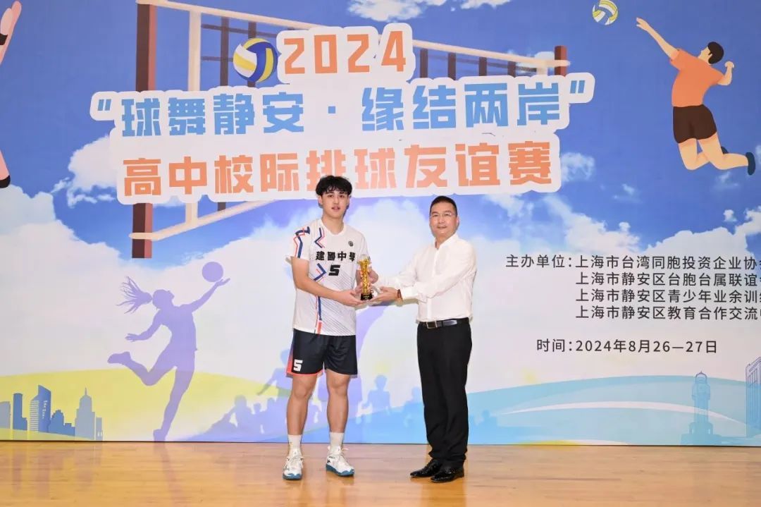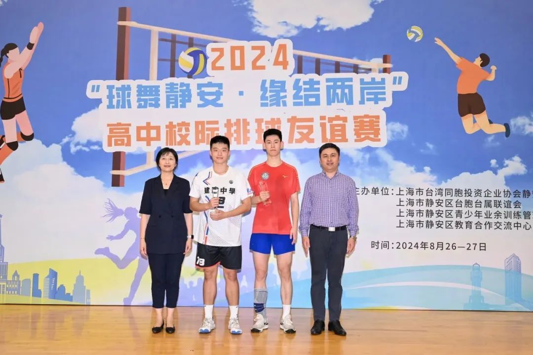 静安区台办主任王立萍、区体育局党组书记、局长马嘉槟、市台办交流处副处长周一锋、区教育党工委副书记徐剑宏分别为最佳主攻手、二传手、副攻手、接应二传颁发奖杯。