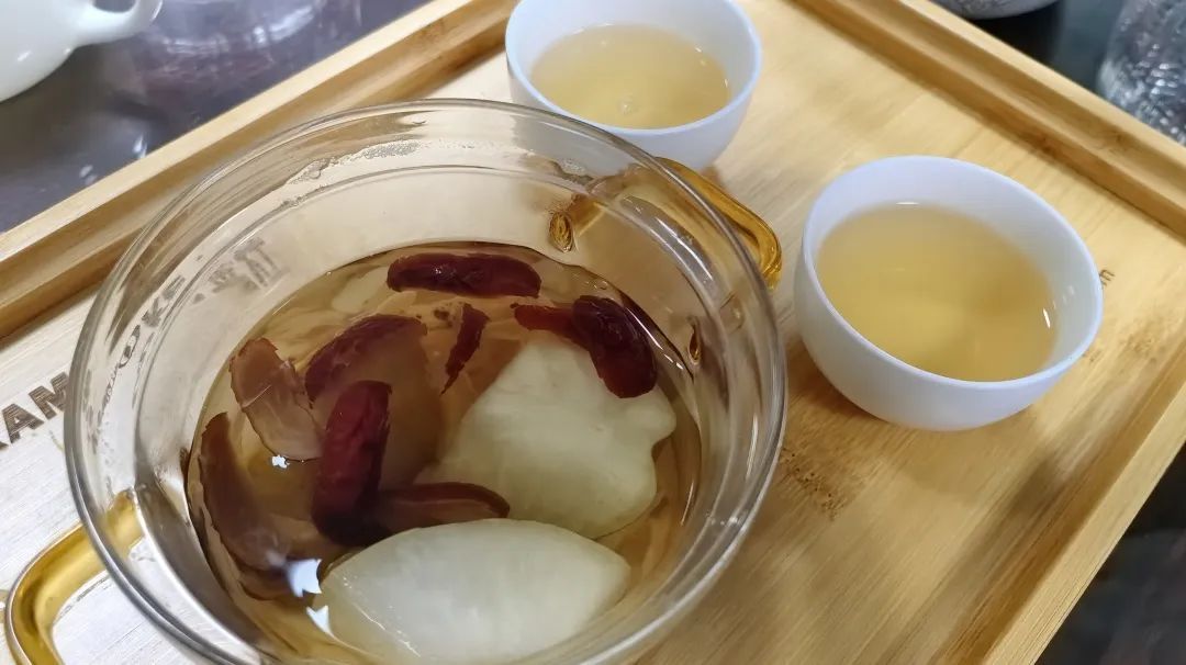 茶汤入杯,色泽清澈。品之,梨香清新,枣香浓郁,清甜无杂,回味悠长,不腻不沉。