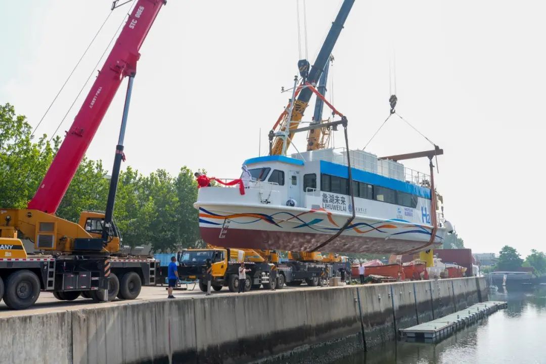 据介绍,从2022年4月开始,滨湖企业无锡蠡湖增压技术股份有限公司联合大连海事大学等院企正式启动“蠡湖未来”号的研发。在船体设计图纸通过中国船级社的审核和批准后,2023年9月,“蠡湖未来”号由海大清能船舶有限公司提供全套氢动力总成并承建,船身为全铝合金结构,总长20.5米,型宽5.2米,以氢气为主要能源,最大可实现200海里的续航里程。经过近1年的紧张施工,该船全面完工并下水,在船体各项指标通过中国船级社验收后,“蠡湖未来”号预计年底投入运行。