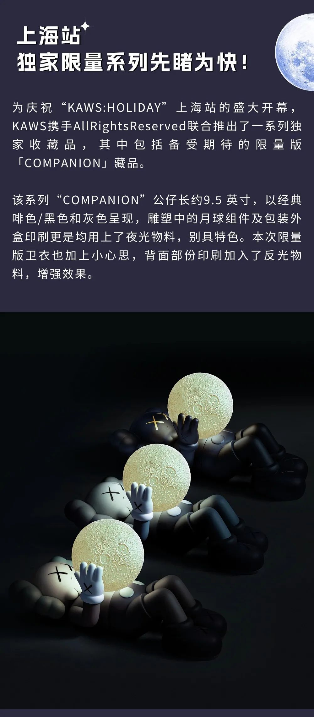 据悉,展览主办单位AllRightsReserved,再度与JFJProductions合作,而作品则为KAWS:HOLIDAY系列中首个亮灯雕塑,呼应了中秋节张灯结彩,诚心祈福的传统。