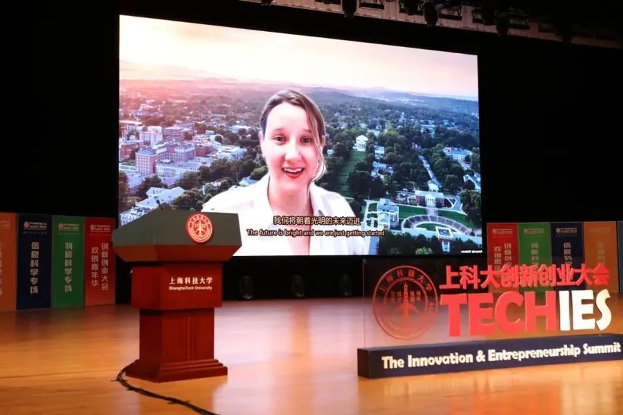上科大双创大会上,一等奖获得者的项目路演和获奖感言以录制视频的形式在现场播放。