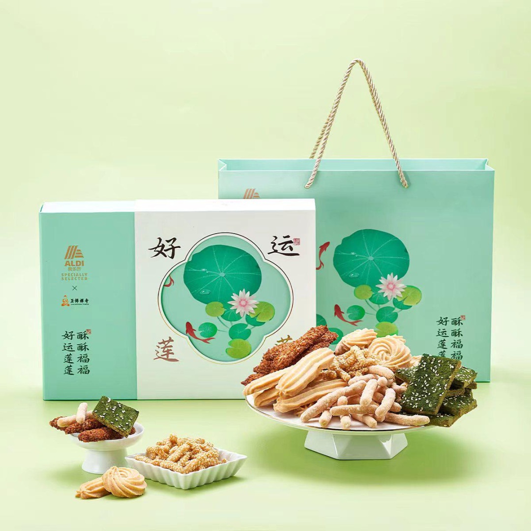 此外,奥乐齐还与玉佛寺推出了“奥乐齐×玉佛寺六合同风糕点礼盒”,内含6款净素糕点:甜淇淋、椰粒酥片、原味脆条、咸淇淋、苔条酥、油枣,传承海派经典风味,还原上海记忆中的老味道。