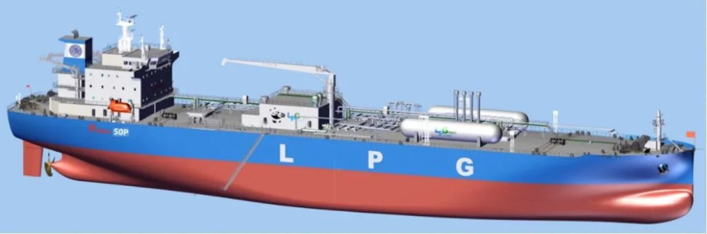 记者了解到,与ASP签订的两艘50000立方米中型液化石油气/液氨运输船是江南造船全新自主研发的中型全冷式液化气船(Panda 50P),总舱容达到50500立方米。该型船液罐采用低温钢建造,可装载液化石油气(LPG)、无水氨(NH3)、丙烯、丁二烯和氯乙烯单体(VCM)等多种石化产品。该船采用江南自主专利的VS-Bow的线型技术,结合螺旋桨后置毂帽鳍CAPRO,使航速和油耗指标均达到国际先进水平。机舱布置双燃料主机和轴带发电机,满足最新的SOx和NOx排放环保要求,同时满足EEDI-3的低碳要求。