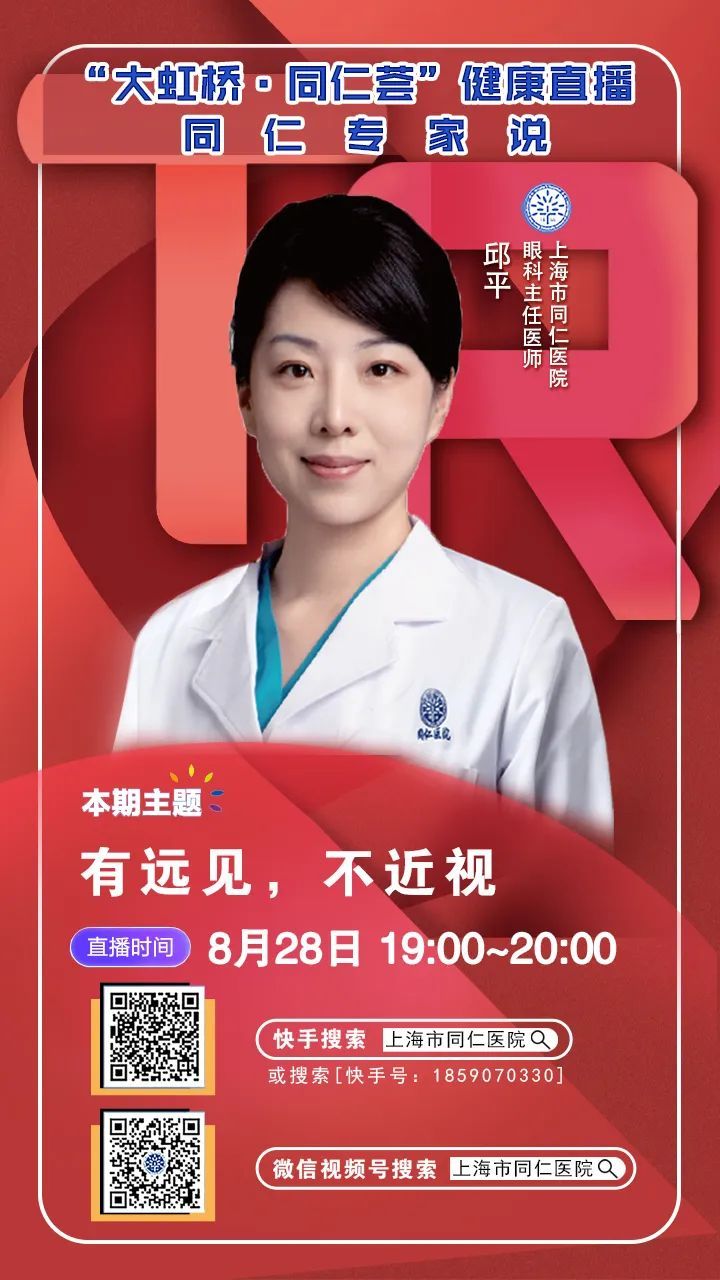 如何预防近视的发生?今天(8月28日)19:00—20:00,“上海长宁”APP将与上海市同仁医院“大虹桥·同仁荟健康直播”共同直播:有远见,不近视。