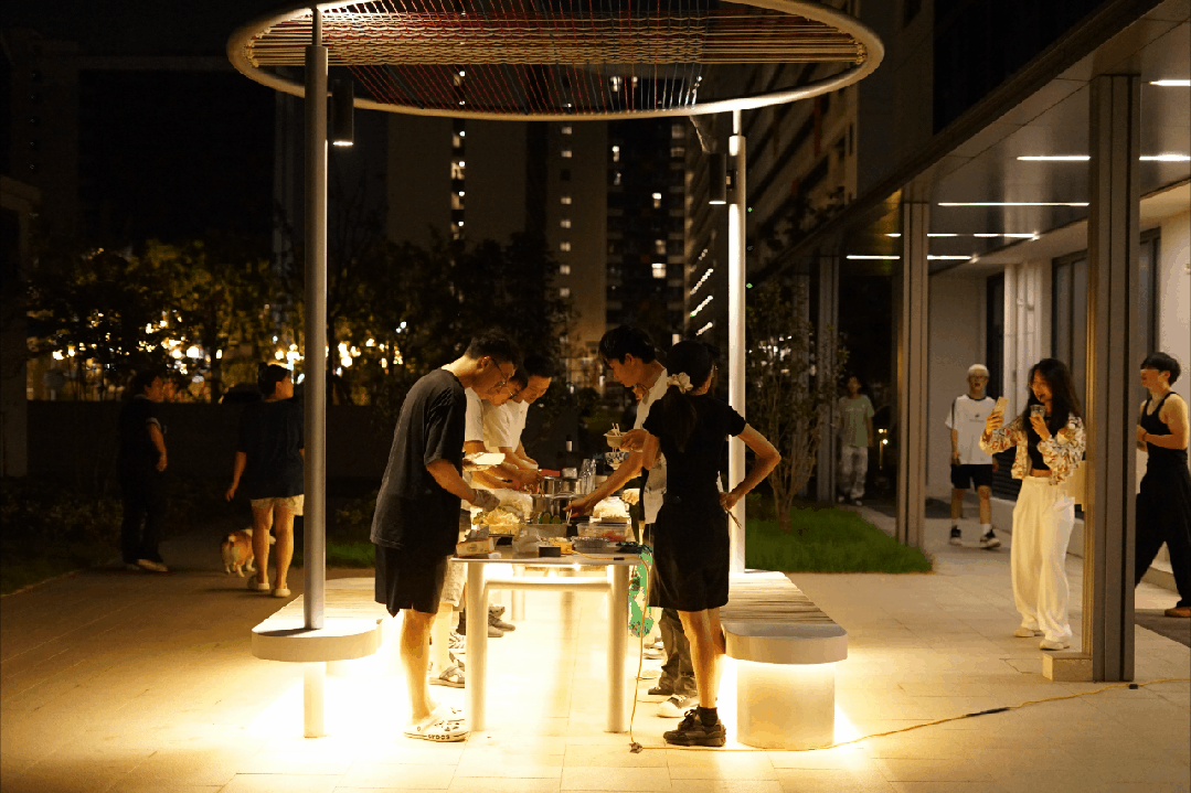 年轻人喜欢在社区群内聊天,经常会聊到食物、做饭的话题,何不举办一次做饭活动?既能互相交流做菜秘诀、分享家乡味道,还能将社区中的共享餐厅、厨房更好地利用起来。于是,“CAMPUS开饭夜”应运而生。当晚,流水席、美食展、社区游戏、快闪二手流通站……吸引了一大批热爱美食的“同学们”相聚在一起。