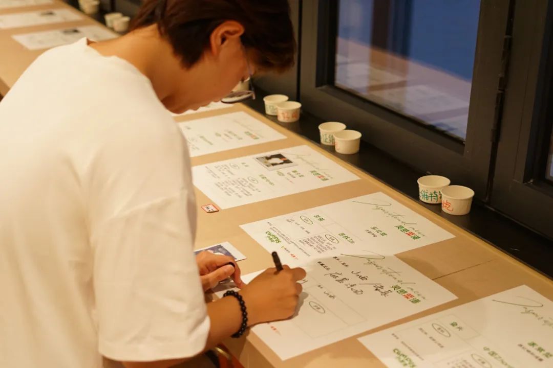 “学弟学妹”们拿着小纸杯和小叉子在桌边排起了队,轮流品尝“师哥师姐”们制作的美味佳肴,品尝完后,就用叉子和纸杯进行“投票”。