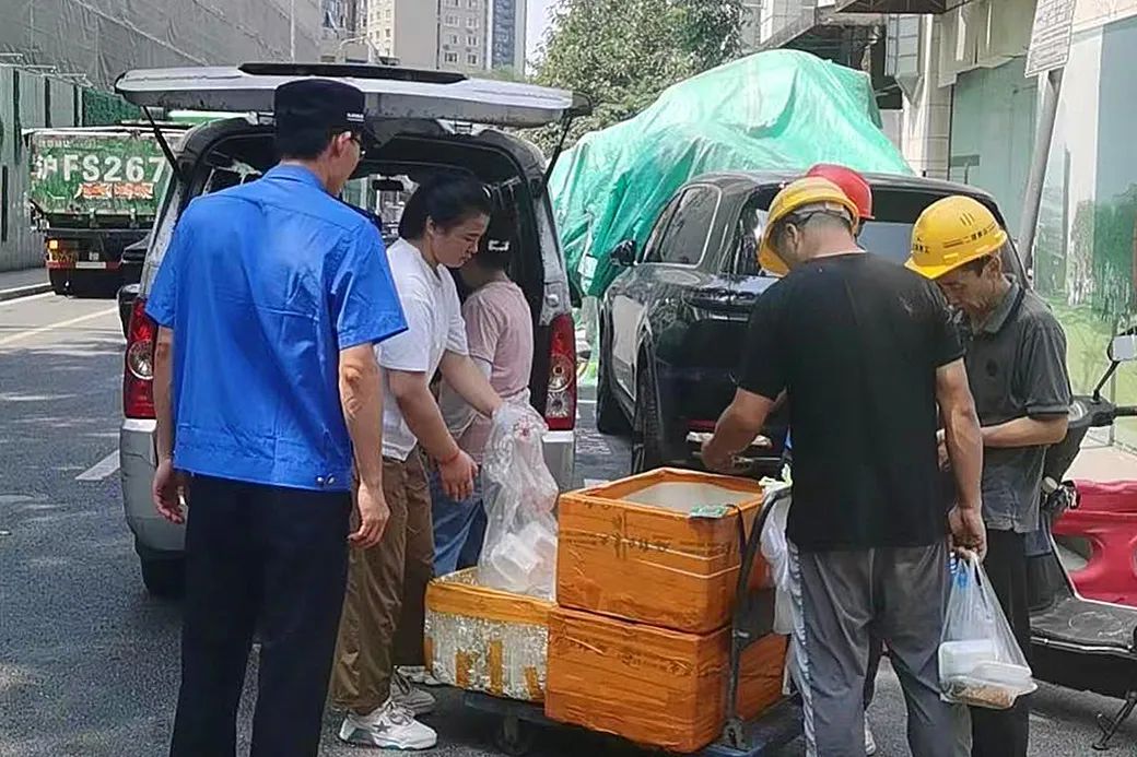耐心劝导、积极引导、加强巡查,TA们集中整治工地门口流动售卖盒饭现象