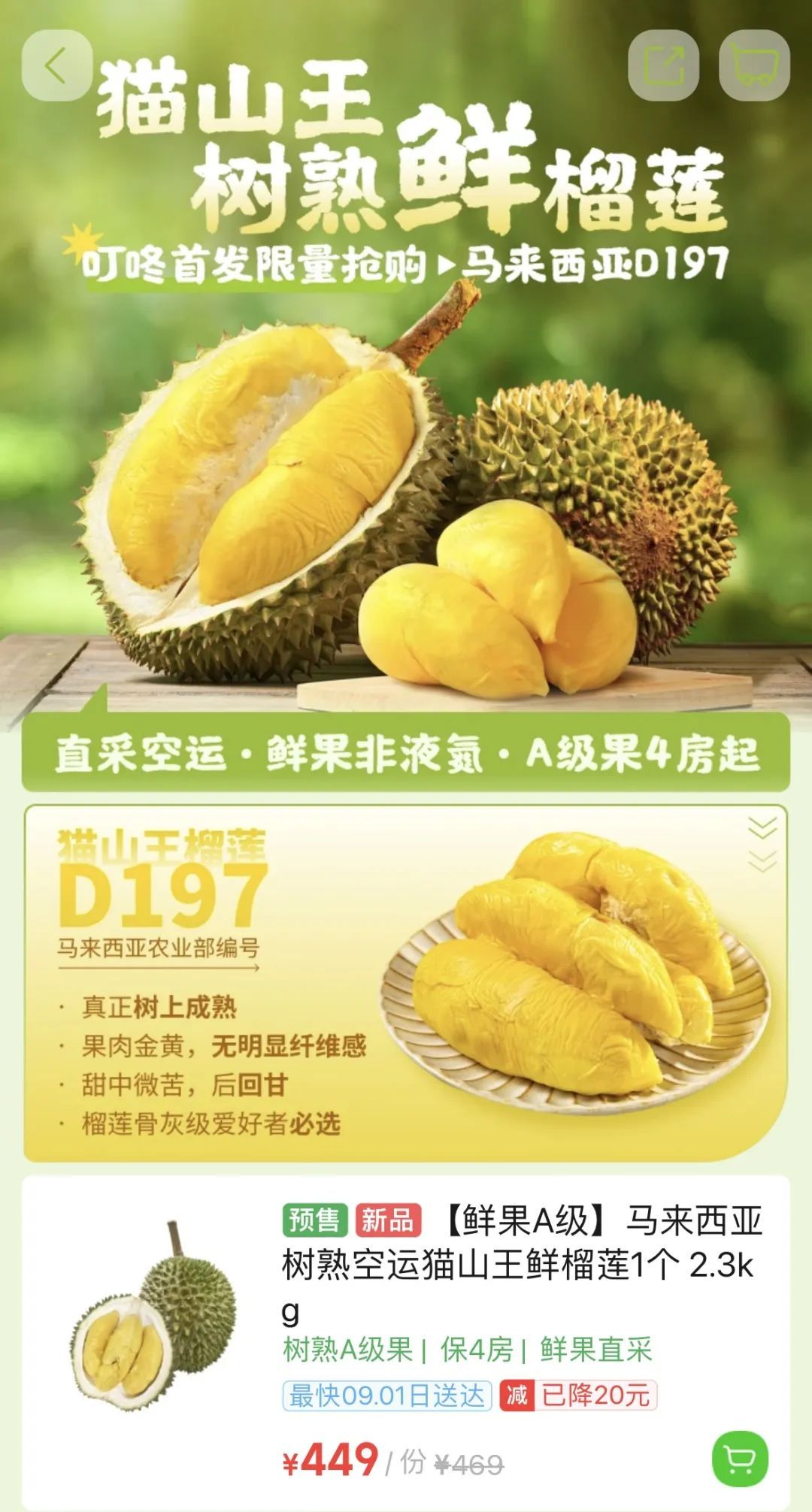对消费者来说,和之前只能买到的冷冻猫山王榴莲相比,鲜食榴莲无需解冻,到手即食,不用再等待就可以吃到口感更加鲜甜软糯的原产地猫山王。