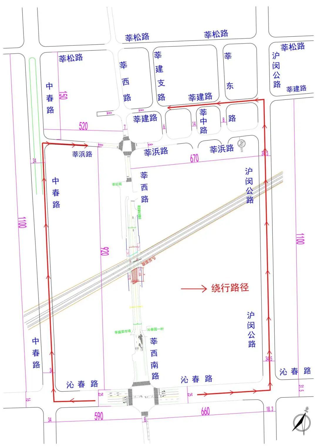 施工期间,莘西南路下穿地道受施工和道路条件限制,采取北向南单向通行管理措施,南向北机动车需通过沁春路—沪闵公路—莘建路或沁春路—中春路—莘浜路等周边路网绕行。请广大市民出行时合理选择路线并提前安排出门时间,尽量避免上述区域,途经施工区域时,注意施工区域设置的引导、提示等相关标志信息,确保通行安全。