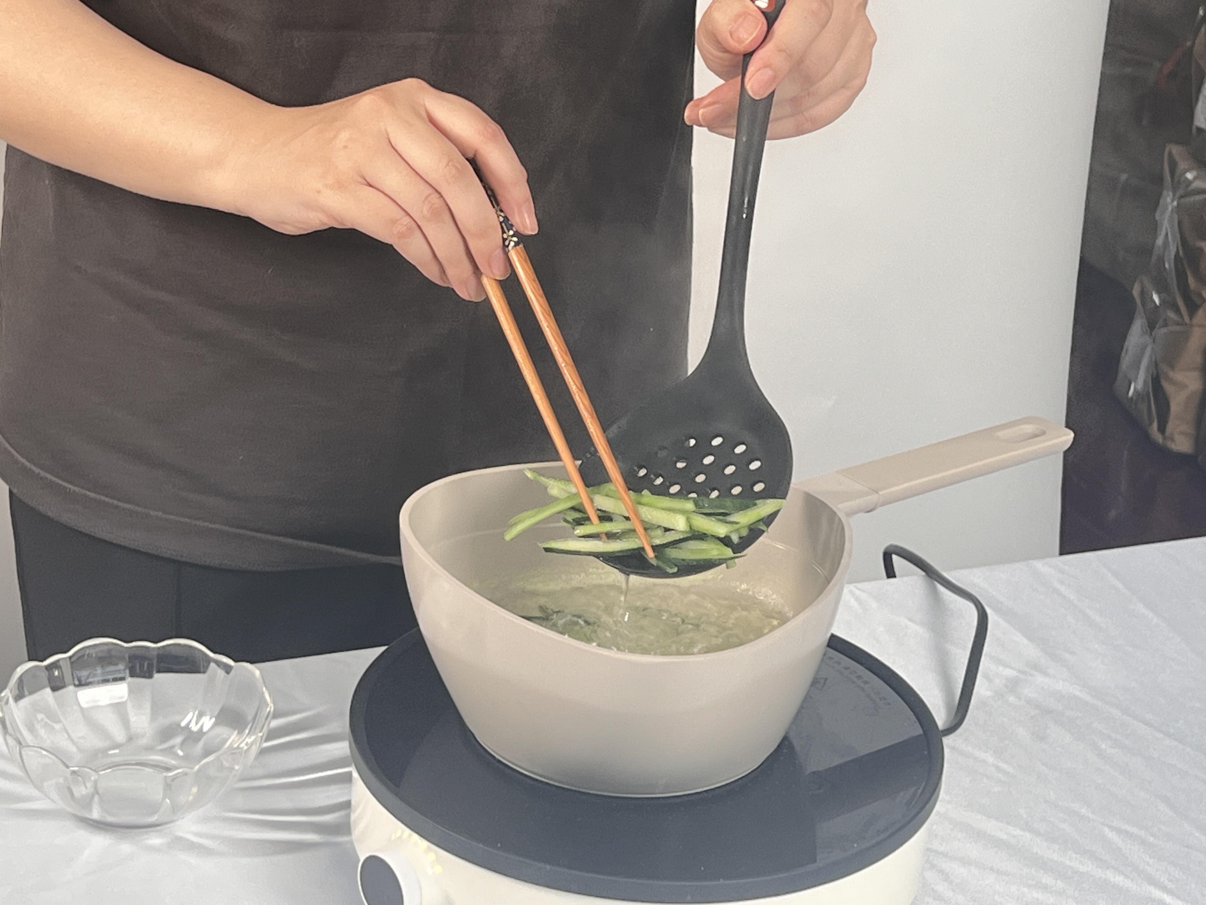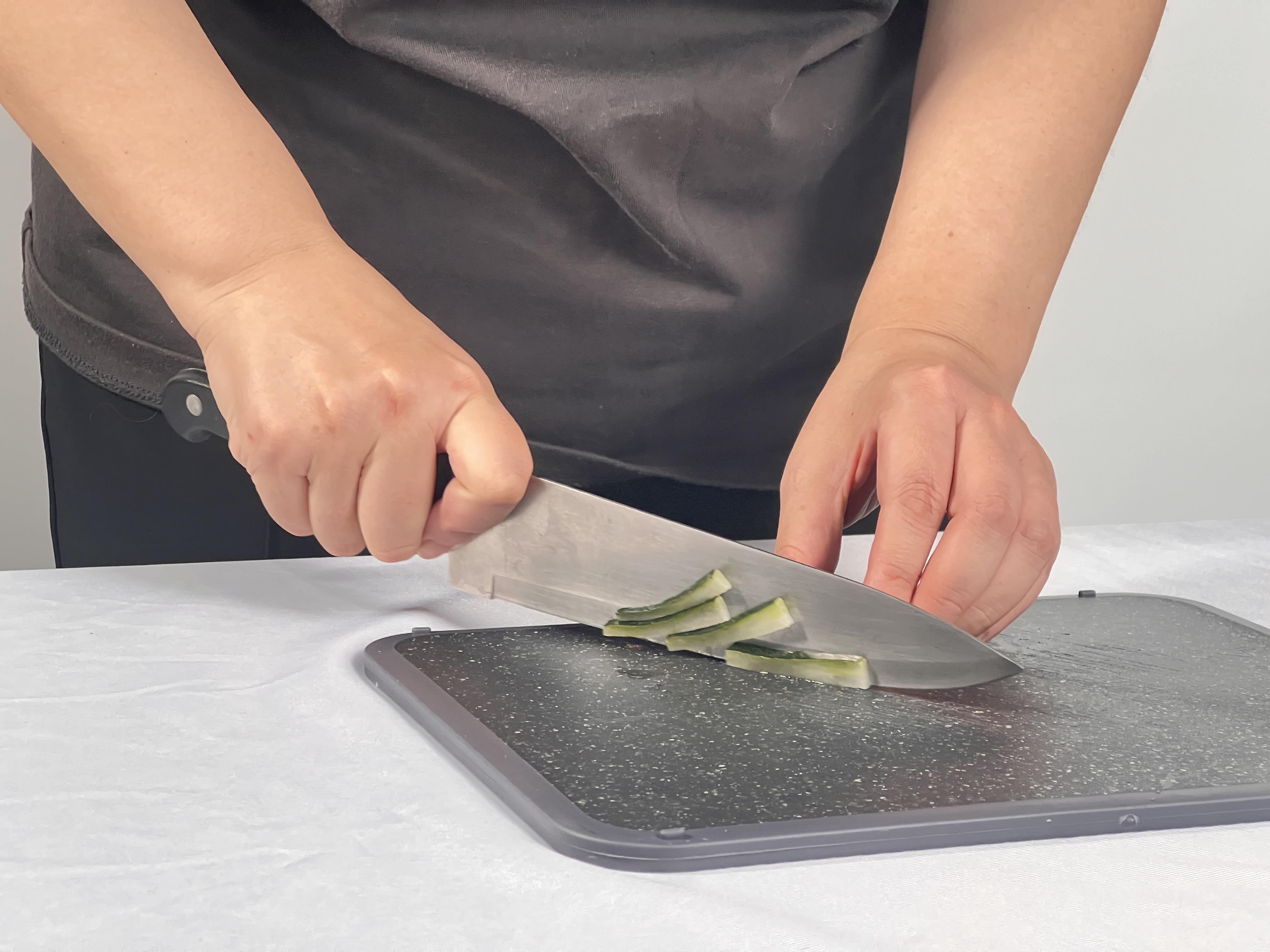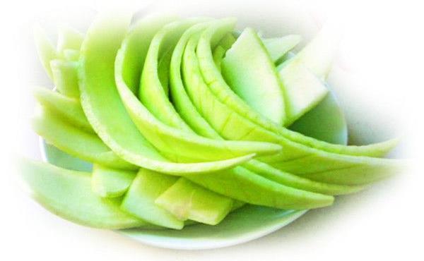 3.冬瓜皮切丝后焯水备用。