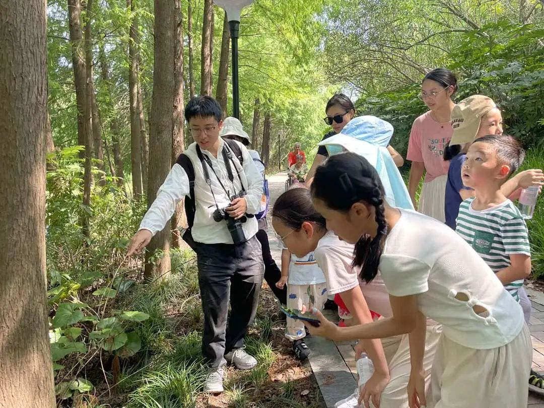 活动当天,复旦大学生命科学学院的学生志愿者们化身为知识向导,引领着一群充满好奇心的青少年踏入了新江湾城湿地的怀抱。这条绿意盎然的湿地长廊,成为了孩子们探索自然奥秘的起点。