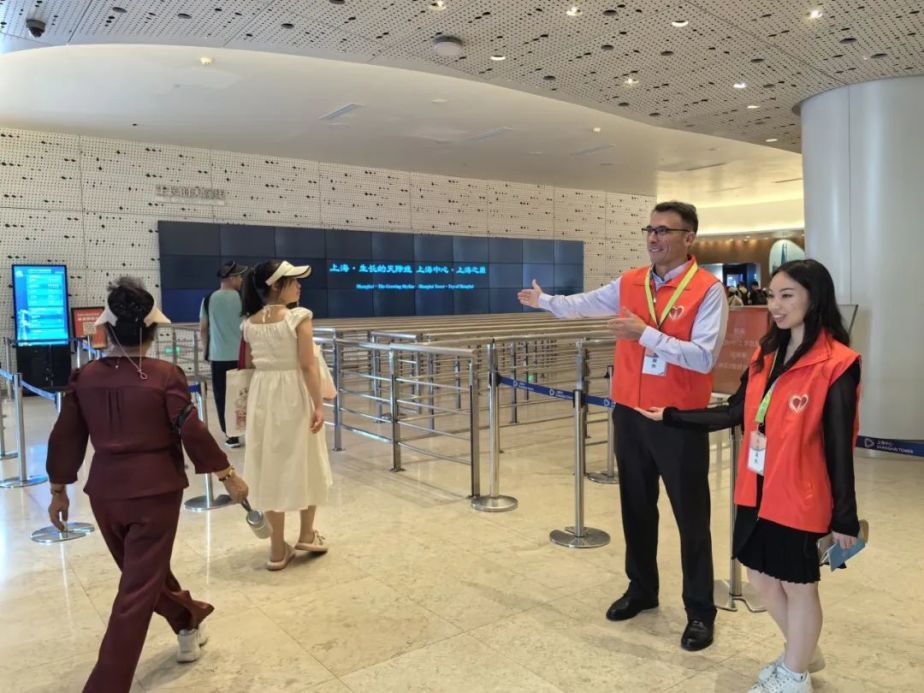 日前,德国巴登—符腾堡州银行上海分行负责人柯瑞戈刚刚完成与客户的会谈,就匆匆赶回办公所在地——上海中心大厦。没顾上休息,他便换好上海中心志愿者服务队的橙色背心,赶到大厦观光厅协助工作人员维持秩序。据悉,上海中心志愿服务队成立一年多来,已累计招募600多名志愿者,服务总时长超过6000小时,为100余万人次中外游客提供了各项志愿服务。