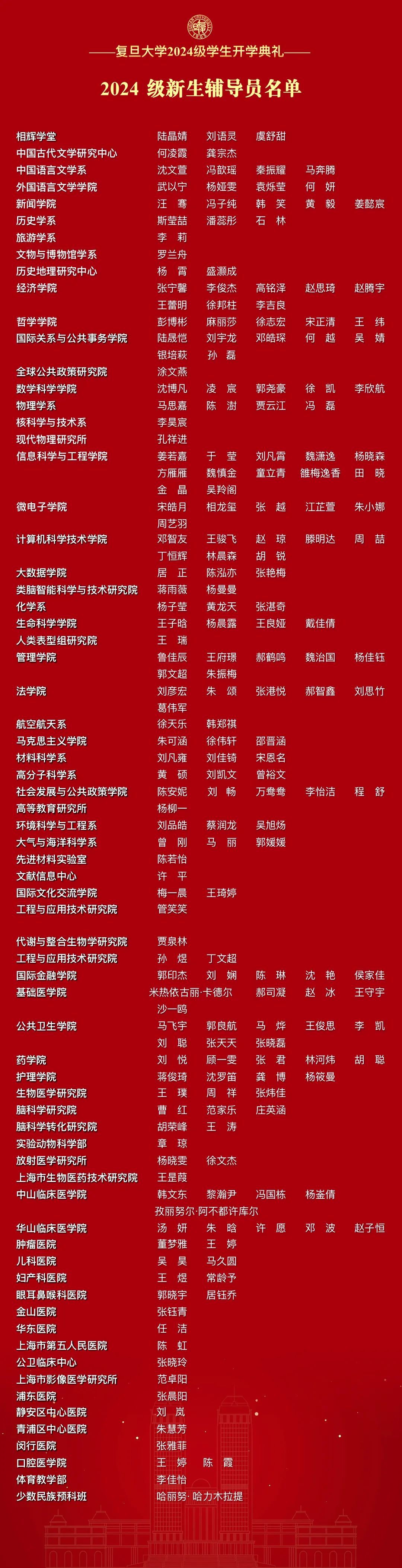 副校长姜育刚宣读复旦大学2024级本科生书院导师名单