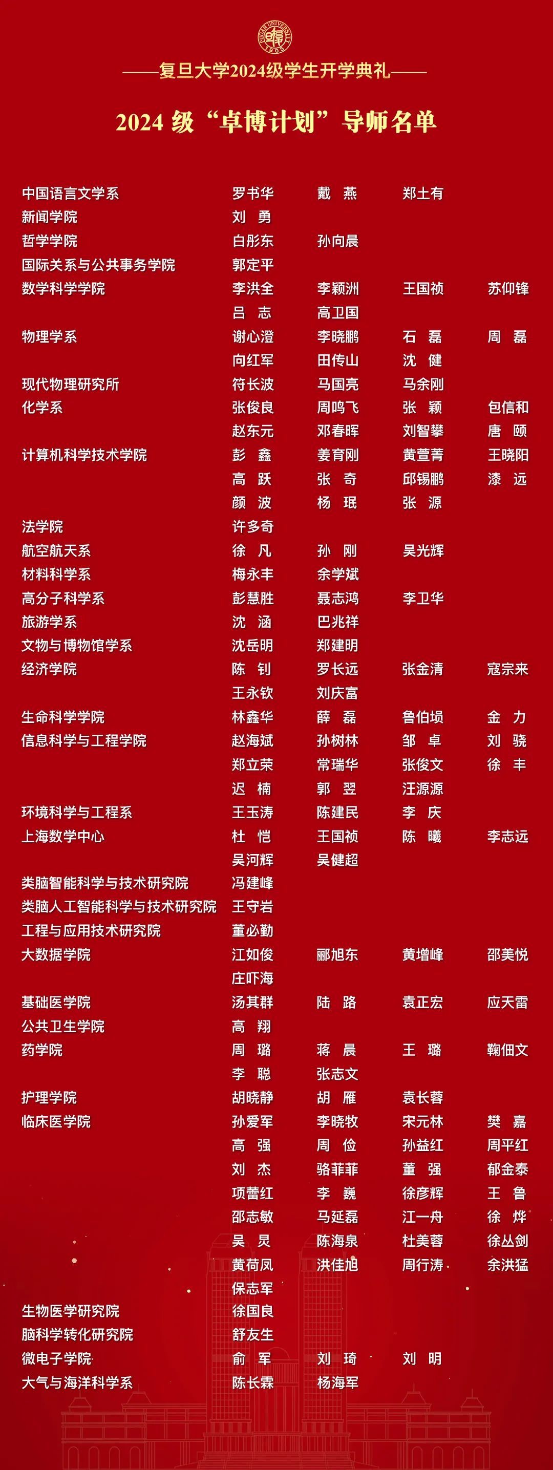 副校长马余刚宣读复旦大学2024级“卓博计划”导师名单