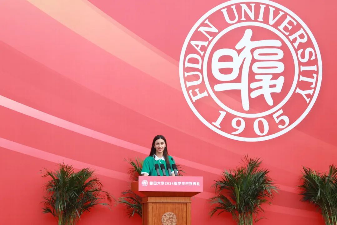 留学生代表、国际关系与公共事务学院2024级本科生宁雪是在中国东北长大的巴基斯坦姑娘,说着一口流利的“东北话”。她和复旦的缘分,来自就读复旦临床医学专业的姐姐宁月。“她总是和我说复旦是特别好的大学。我也很想来。”去年她作为首期预科留学生来到复旦,深深地爱上多彩校园生活。今天,作为“老新生”,她给自己定下一些小目标,“很多中国朋友喊我们‘巴铁兄弟’。毕业后,我希望能够成为维护中巴钢铁友谊的使者,让更多外国友人了解中国的灿烂文化,理解中国的高速发展,也让更多的中国朋友感受巴基斯坦的热情与魅力”。
