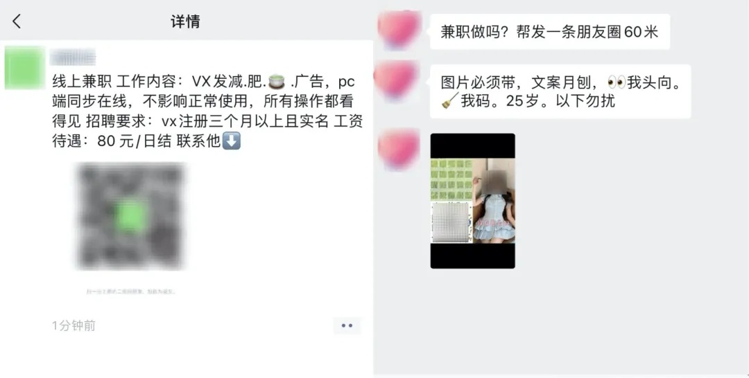 协助他人发布朋友圈信息存在较大安全风险。根据国家相关法律法规及《腾讯微信软件许可及服务协议》《微信个人账号使用规范》等相关规范,帮助他人在朋友圈、微信群发布违法违禁品营销信息属于违规行为。 更为严重的是,如果所发布的内容涉及欺诈引流,还会将自己的好友置于诈骗风险之中。 同时,明知这类“兼职”涉及帮助不法分子传播不良信息或欺诈引流信息的情况下,却仍以此换取报酬,实际上等同于用个人账号协助实施违法犯罪行为。在知情的情况下协助黑灰产活动,很可能将因涉嫌帮助信息网络犯罪活动罪而承担刑事法律责任。 请大家珍惜自己的微信账号,切勿为了微薄利益而帮助不法分子发布不良信息或欺诈信息,不做电诈工具人。